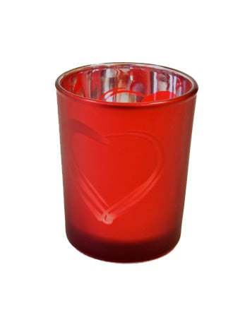 Crveni matirani stakleni svijećnjak srce 7 x 5,5 cm romantična dekoracija