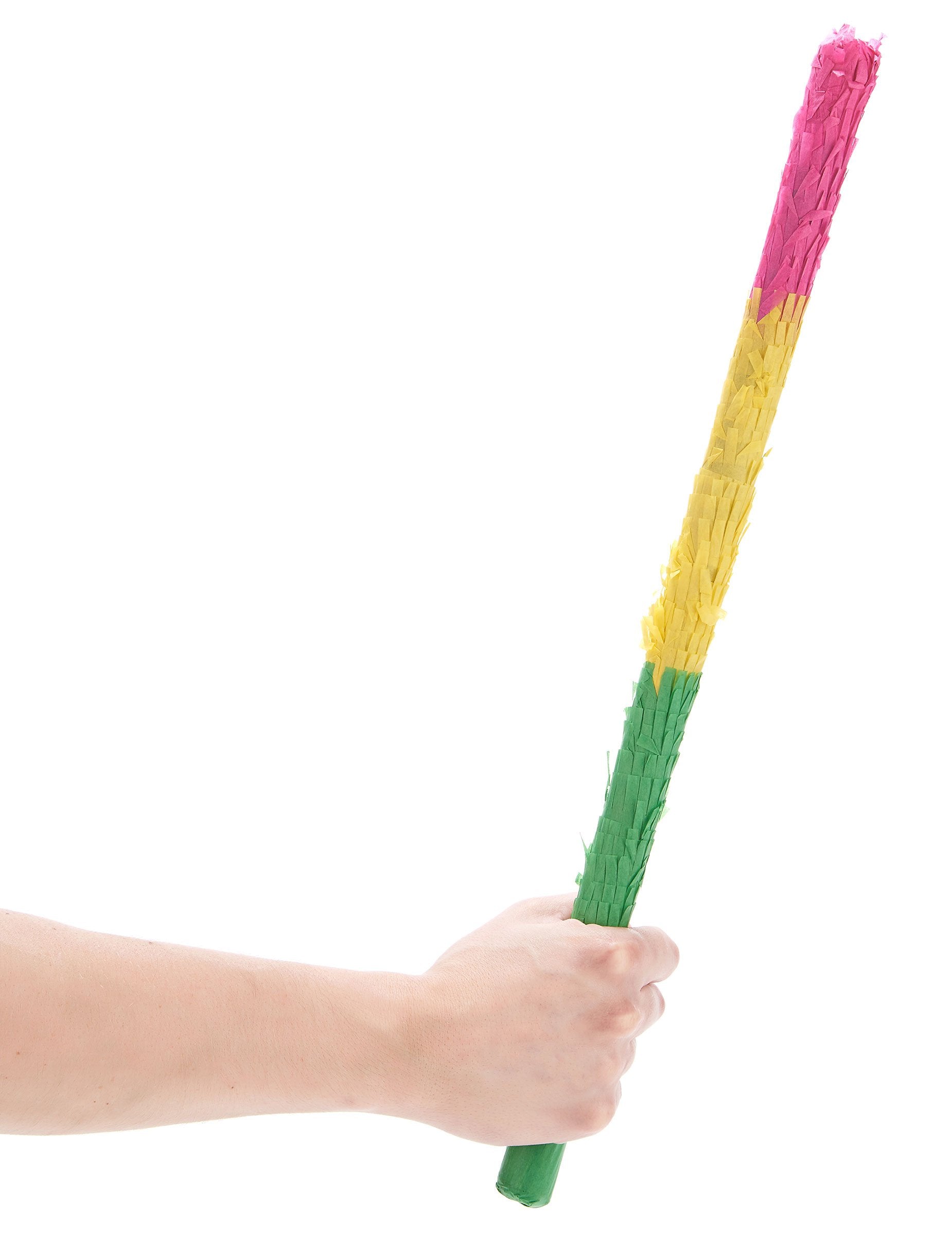 Ovaj štapić od 50 cm za pinata izrađen je od krute plastike prekrivene zelenim, žutim i ružičastim krep papirom. Bit će idealno za rođendan da povrati sve bombone!