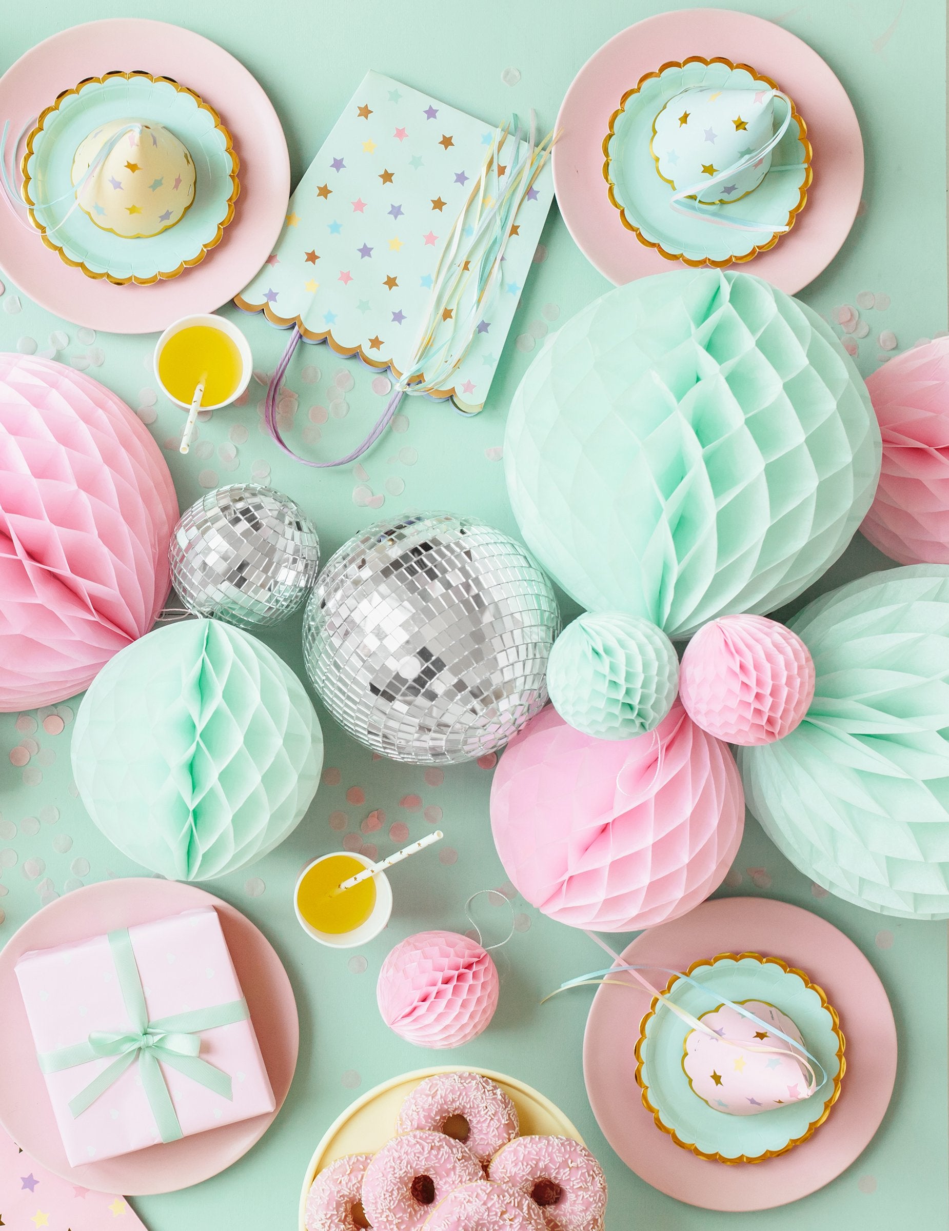 Odaberite ovu šarmantnu dekorativnu kuglu izrađenu od saćastog papira u boji mente. Promjera 10 cm, jednostavno se rasklapa pomoću priloženih ljepljivih traka. Tanka uzica omogućuje vam da je objesite bilo gdje u trenu. Idealna za rođendan, vjenčanje, krštenje ili baby shower, ova mini viseća dekoracija unijet će trendi i šarenu notu u vašu dekoraciju!