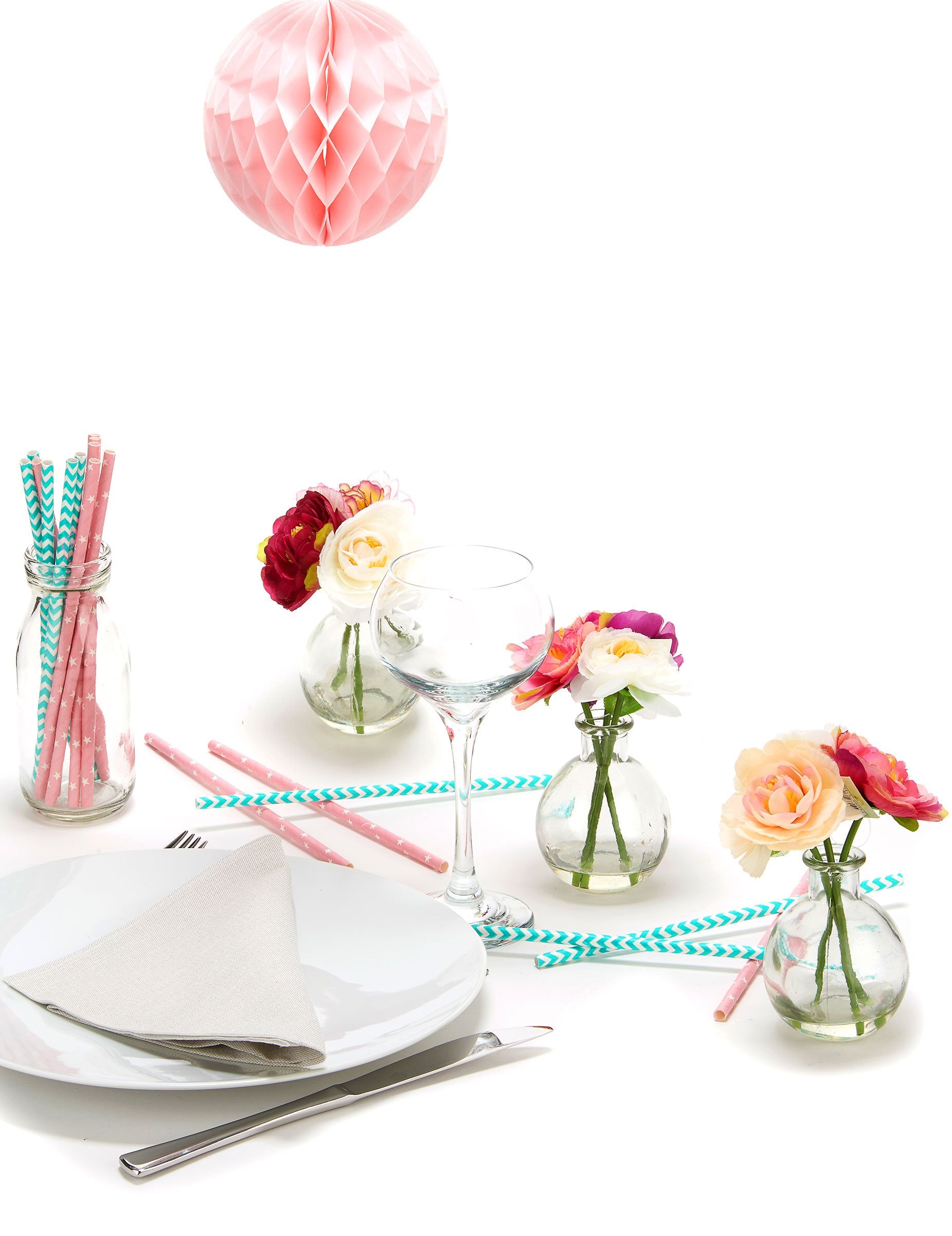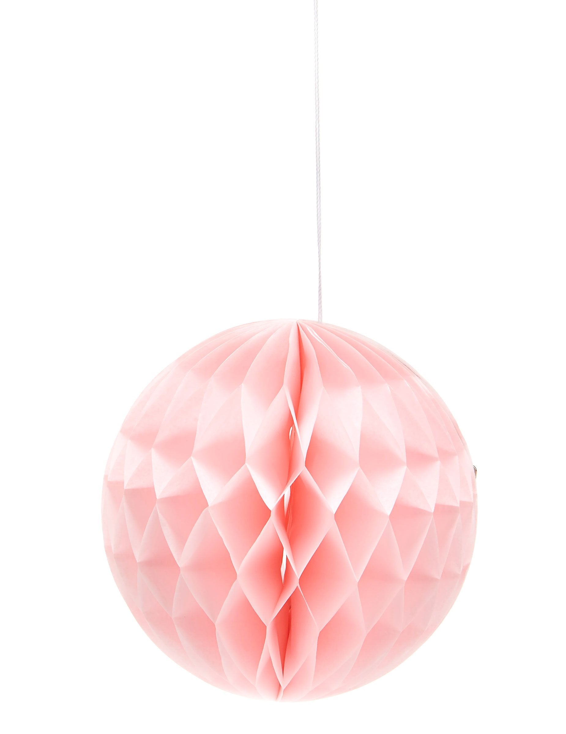 Uljepšajte svoj događaj ovom saćastom papirnatom kuglom u živopisnoj bombon-ružičastoj boji. S promjerom od 12 cm kada je otvorena, lako se sastavlja zahvaljujući priloženim pričvrsnicama (samoljepljive naljepnice i spajalice). Diskretna bijela uzica omogućuje jednostavno vješanje u zrak. Ove šarene viseće dekoracije savršene su za upotpuniti dekoraciju rođendana ili vjenčanja.