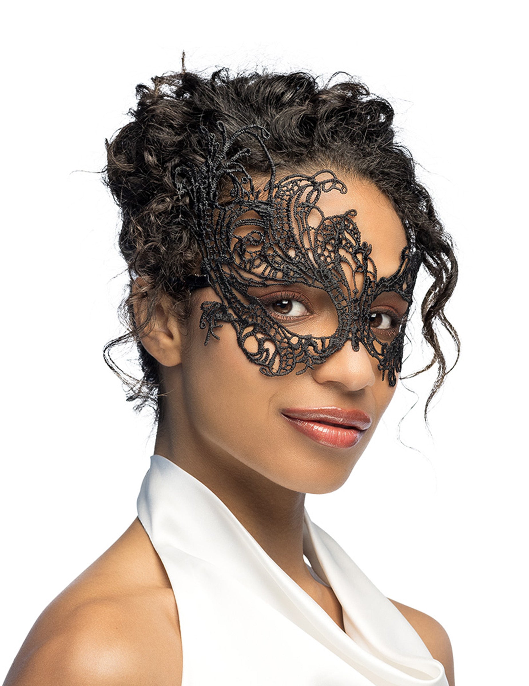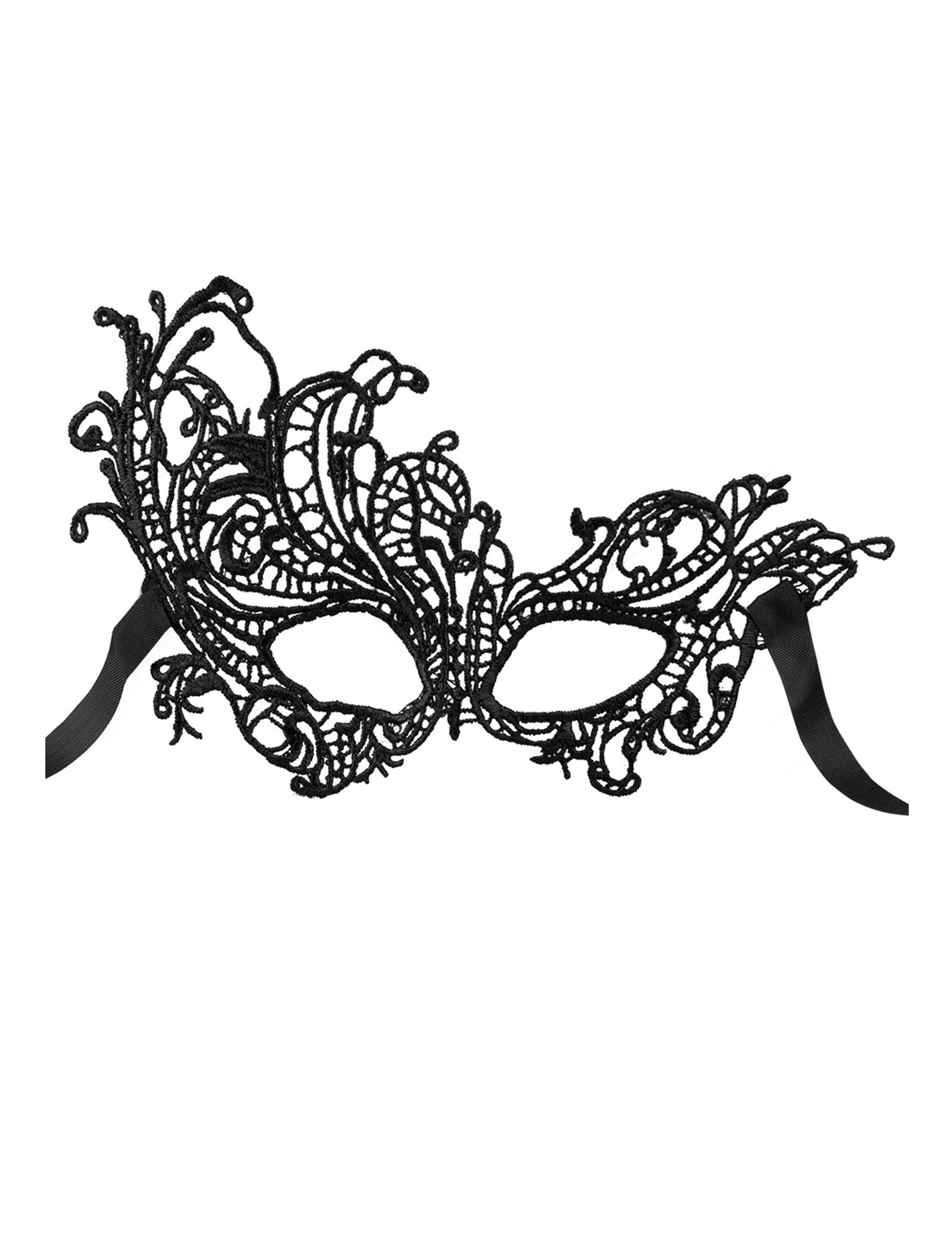Ovaj odrasli vuk je u crnoj čipki. Asimetričan, viši je s jedne strane glave i poći će vam na čelo. Ovaj se vuk lako nosi pomoću kravata za vezanje oko glave. Bit će savršeno dovršiti kostim na temu karnevala u Veneciji.