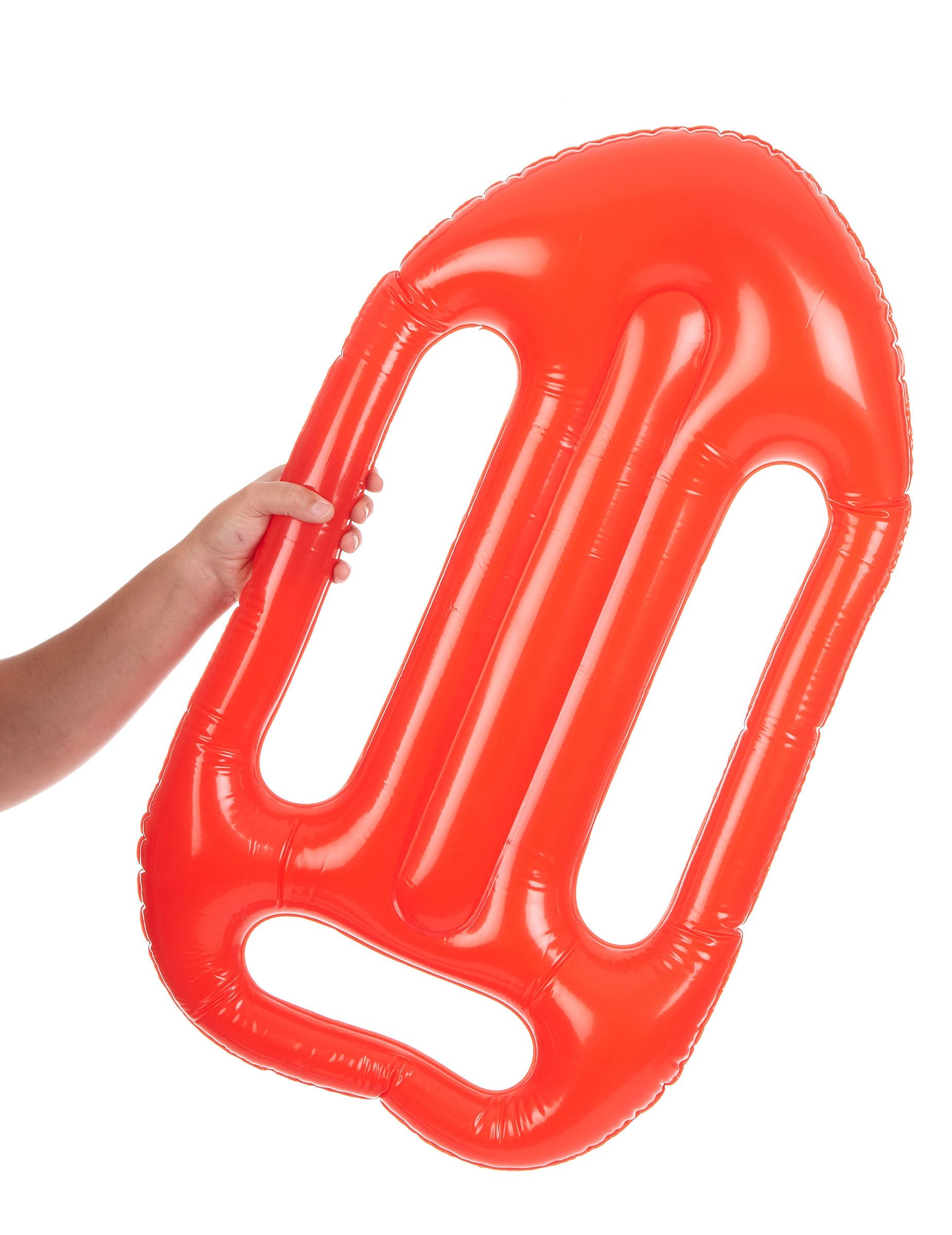 Ova ploča za spašavanje na napuhavanje izrađena je od crvene plastike. Nekad je napuhana 73 cm. Ova će ploča biti savršena za dovršavanje prerušavanja vašeg spasitelja na plaži.