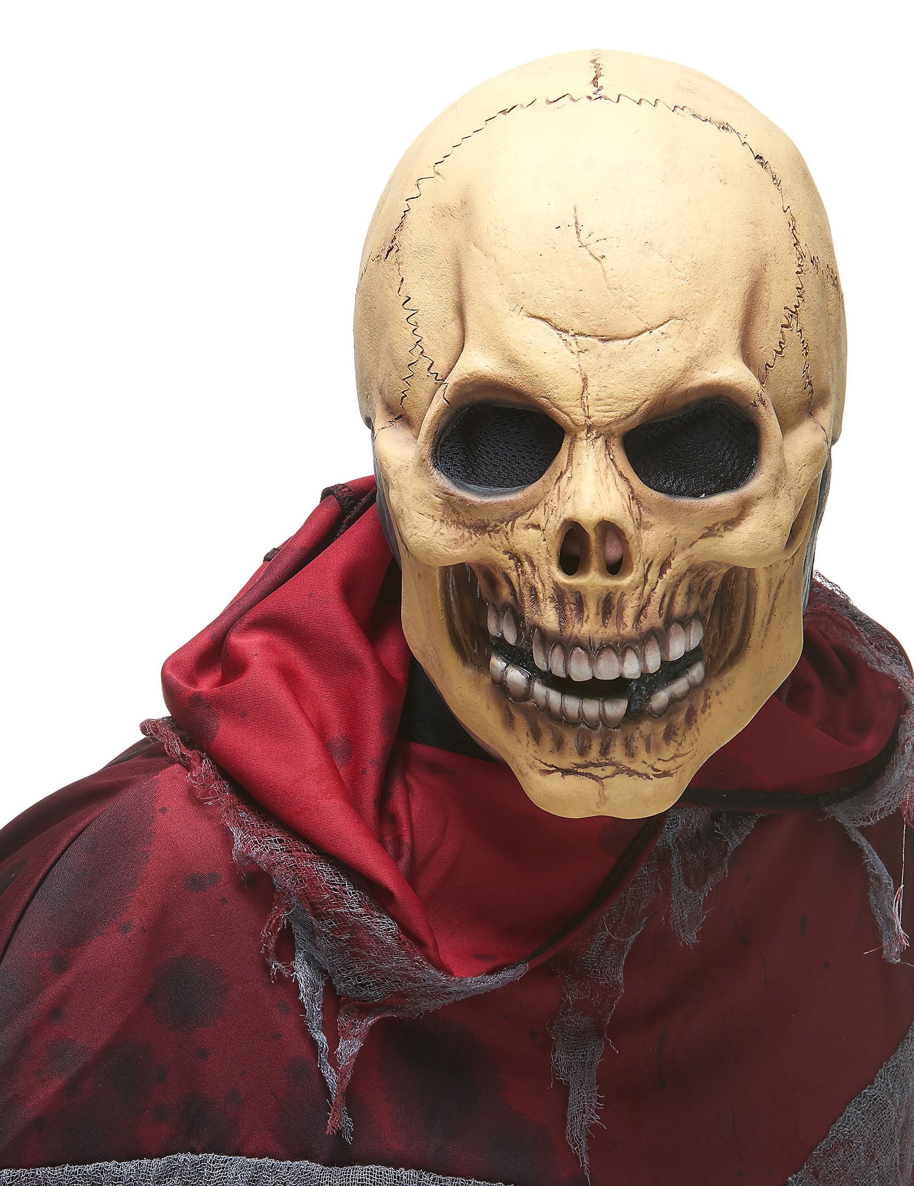 Ova lateks maska je puna i predstavlja nasmijanu lubanju. Nos i usta su otvoreni, a oči imaju mreže od tkanine kako bi se osigurala zastrašujuća strana. Ova će maska biti idealna za uplašenje i podizanje najviše bombona za vašu večer Noći vještica!