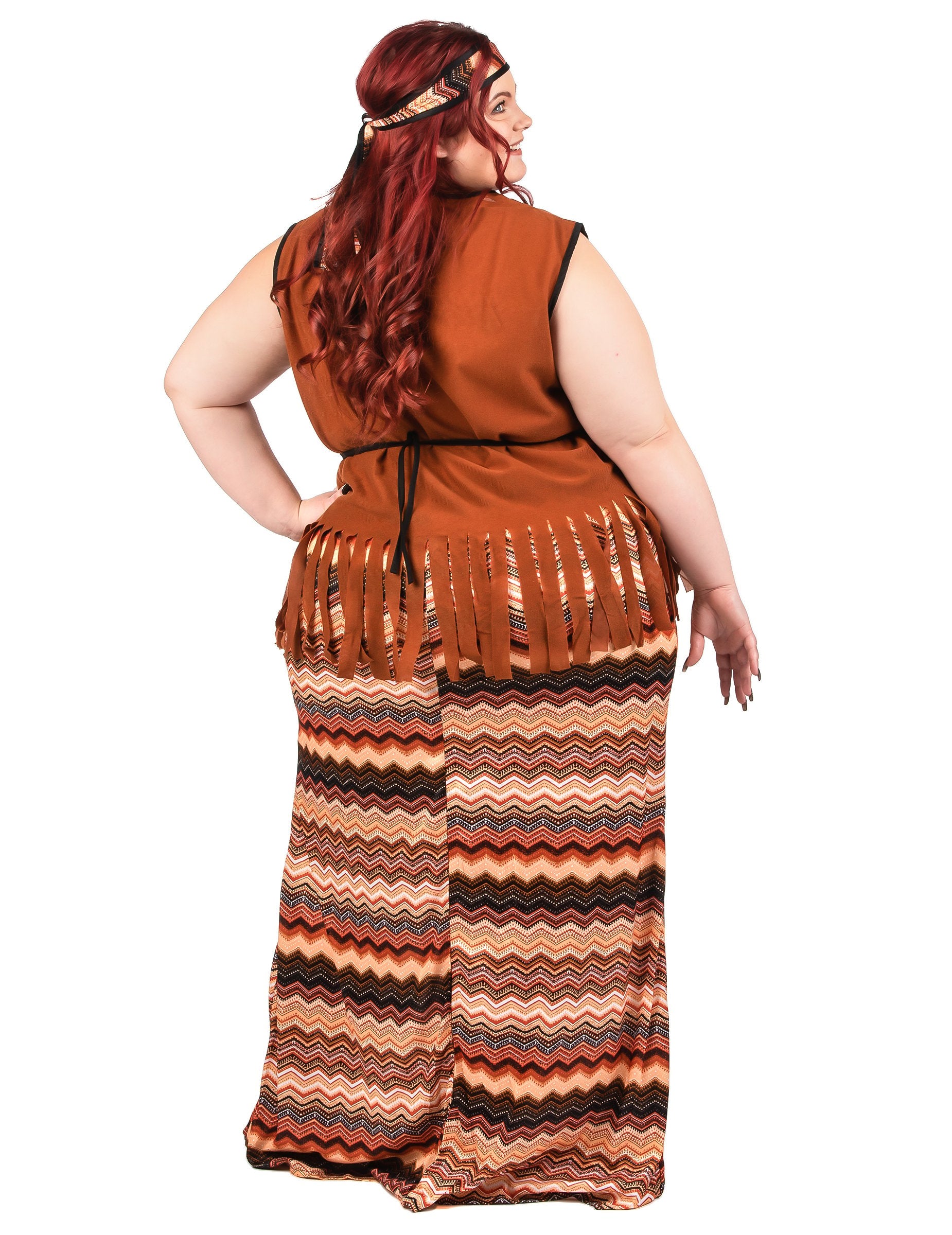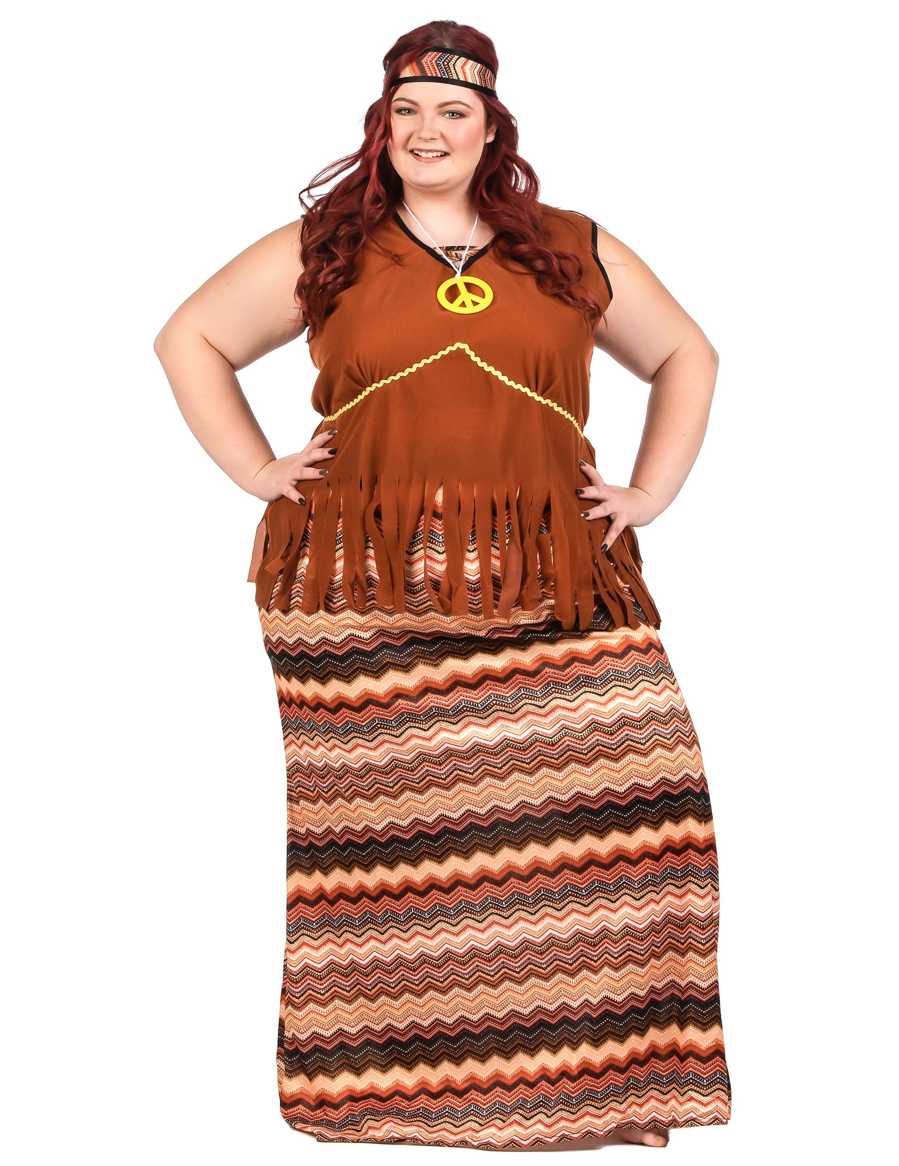 Ovaj hipi kostim za žene sastoji se od gornjeg dijela, suknje, trake za kosu i ogrlice.