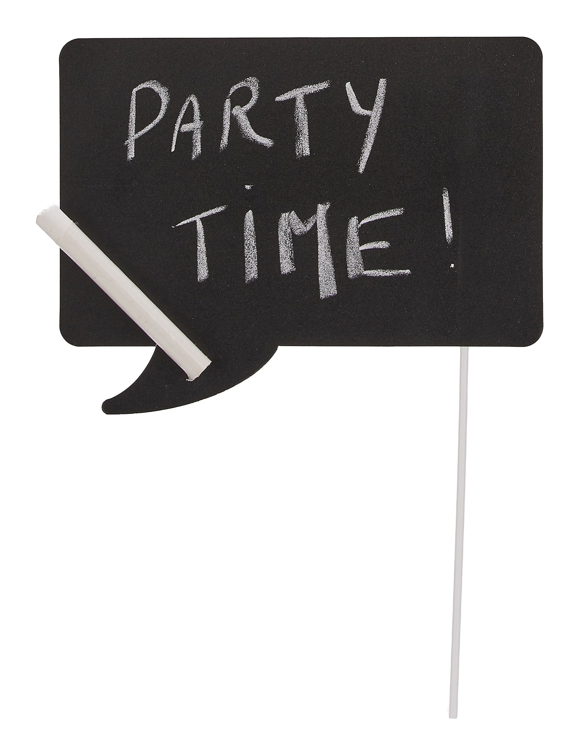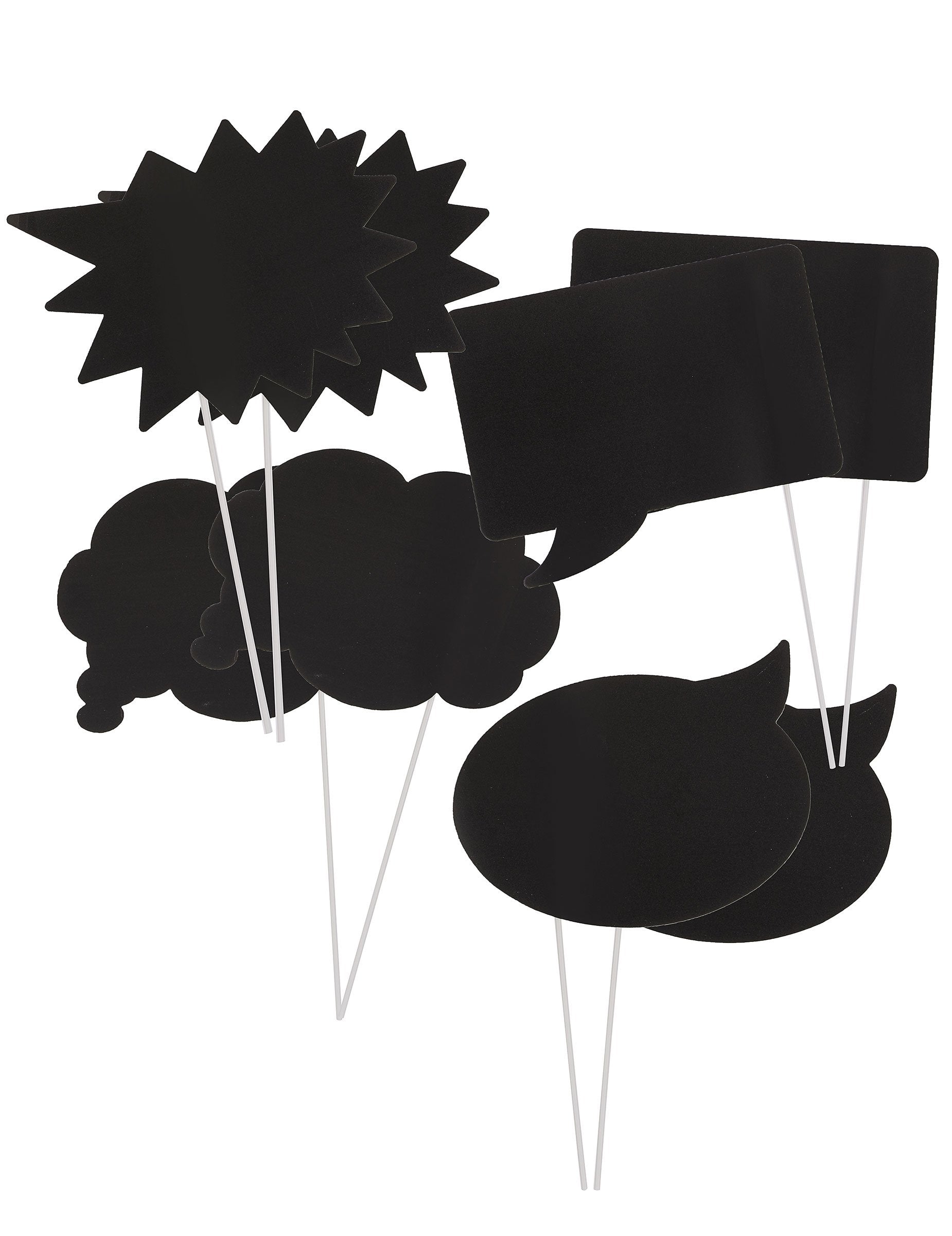 Ovaj komplet Photobooth -a sastoji se od krede i 8 dodataka. Svaki mjehurić nalazi se u debelom crnom papiru i ima bijeli plastični štapić koji omogućava da se lako održava. Osim toga, postoje 4 modela mjehurića, od kojih svaki odlazi oko 17 cm. Mala dodatna: kreda koja vam omogućuje personaliziranje dodataka! Izvrsna animacija koja će dodati dodir ludila tijekom vaših svečanih događaja!