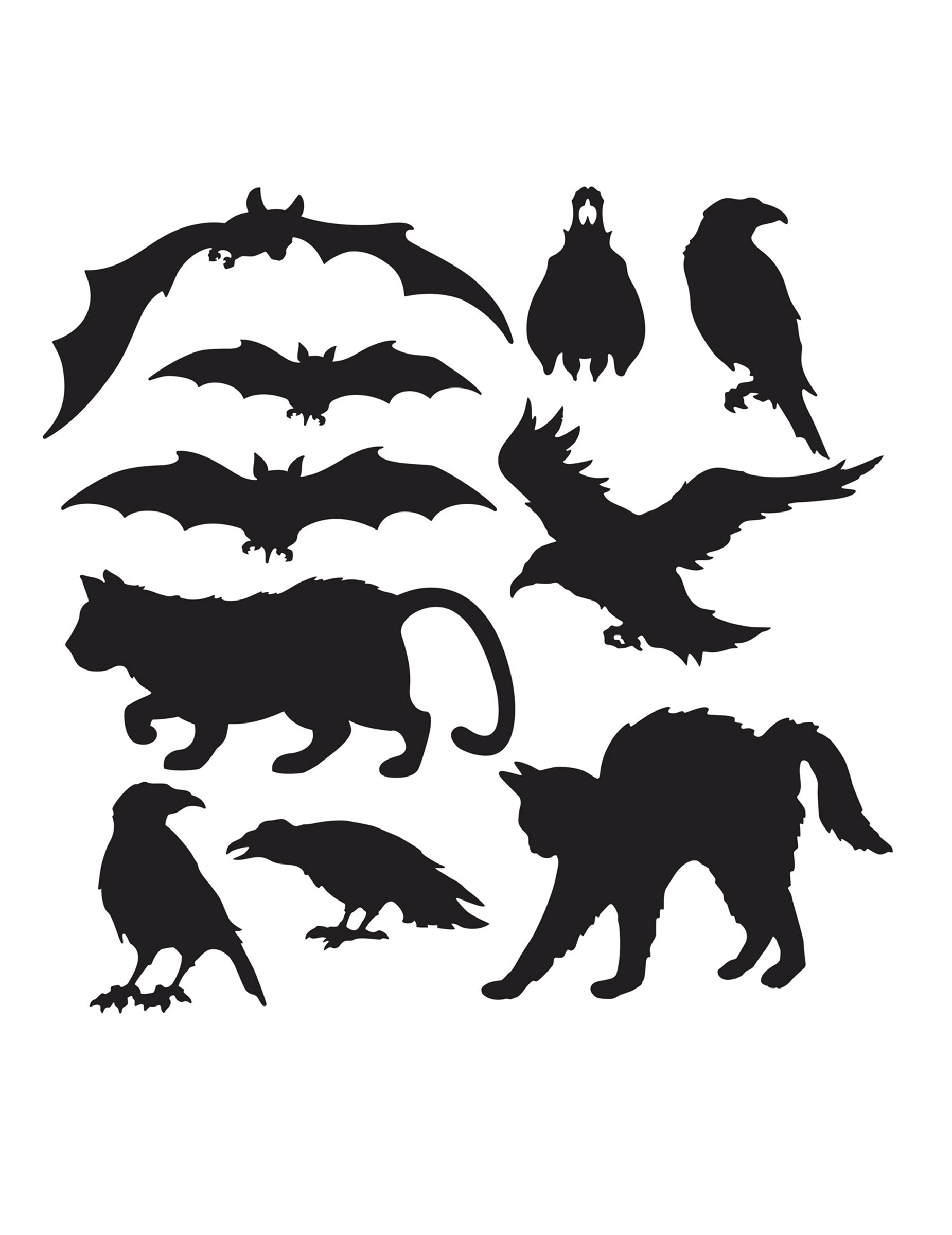 Ovi ukrasi se prodaju u seriji od 10. potpuno crne, oni predstavljaju siluete nekoliko životinja specifičnih za Noć vještica! Šišmiši, mačke ili vrane kako biste dovršili zastrašujuću atmosferu! Mjeri između 13 i 32 cm, lako se pričvršćuju na sve vaše nosače pomoću pričvršćivanja tijesta ili ljepljive trake! Dodajte dodir gotike svojim zidovima na Halloween večeri!