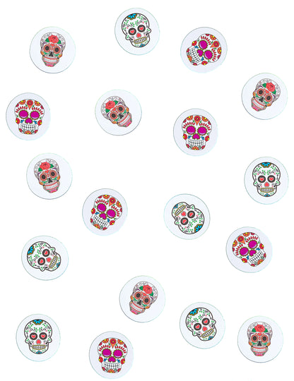 Ova se parcela sastoji od 9 g konfeta. Potpuno bijeli, svi su ispisani s različitim uzorkom na svakoj sobi i mjere 4 x 3 cm. Upućene u bojama poznate dijagnoze Los Muertosa, lubanje će vam veseli dodir donijeti ukras stola! Putujte u Meksiko i proslavite mrtve bojom!