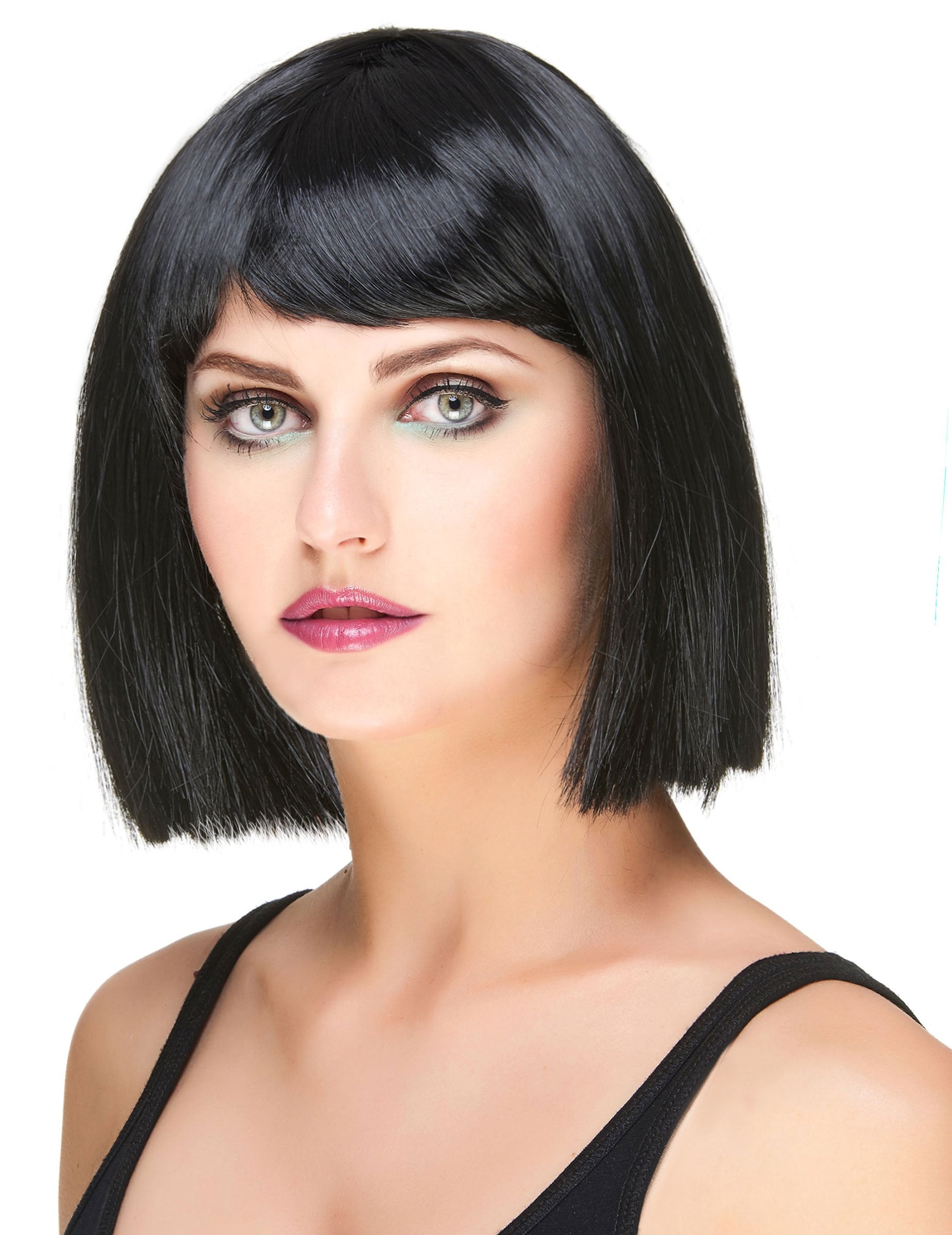 Crna kvadratna perika sa ženskim šiškama
