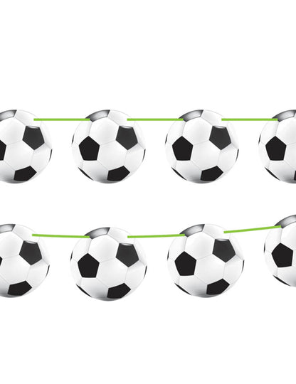 Ovaj vijenac sastoji se od 15 kartonskih balona. Svaka mjera promjera 22 cm i povezane su sa satenskom zelenom vrpcom koristeći boju travnjaka! Garland mjeri 10 metara i lako je pričvršćen na zid zahvaljujući vrpci! Uronite u svijet nogometa i dokažite svoju strast prema ovom sportu sa 100% dekoracijama stopala!