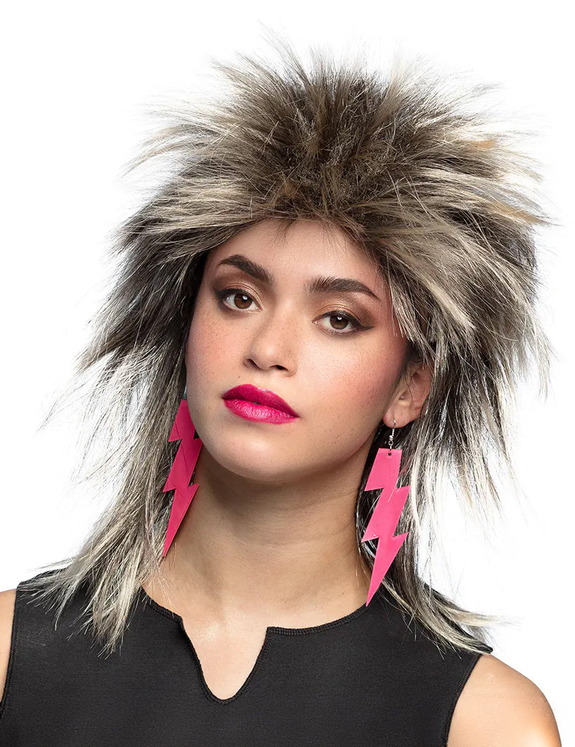 Ove naušnice su za odrasle, duljine su oko 10,5 cm. U plastičnoj i fluorescentnoj ružičastoj boji predstavlja bljeskalicu. Ove naušnice bit će savršene za Accescoirisse vašu odjeću za večer 80 -ih.