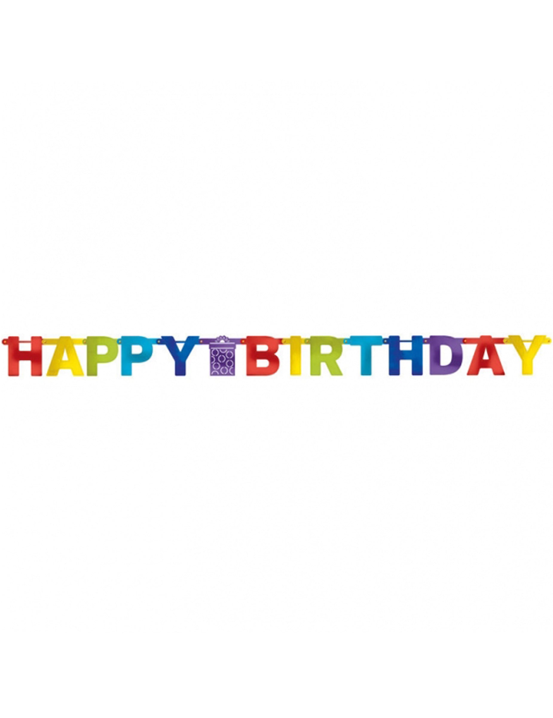 Ovaj artikulirani rođendanski vijenac u metalnom kartonu mjeri otprilike 213 cm. Sastoji se od trake na kojoj su obješene višeslojne vinjete od 16 cm koje predstavljaju poruku "Sretan rođendan". Prisutna je i poklon naljepnica. Iz niza na svakom kraju omogućit će vam da lako objesite ukras. Vaš ukras za rođendan na šarenu temu bit će upotpunjen ovom zabavnom i sjajnom vijenkom!
