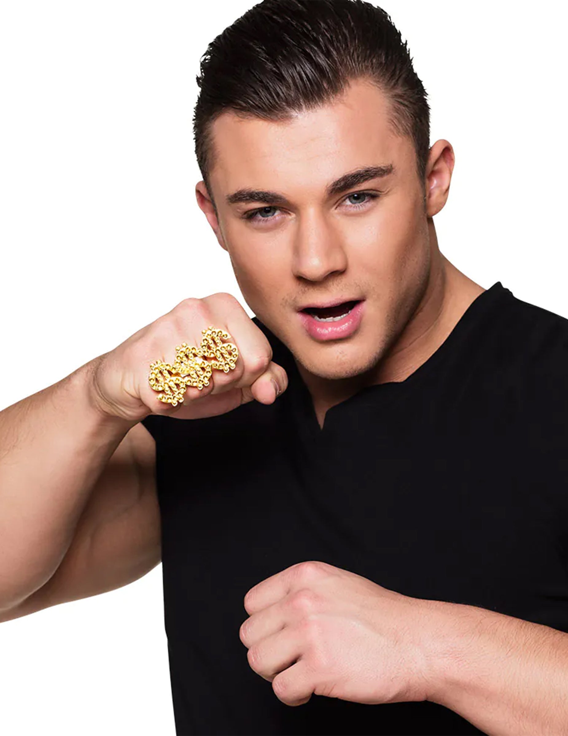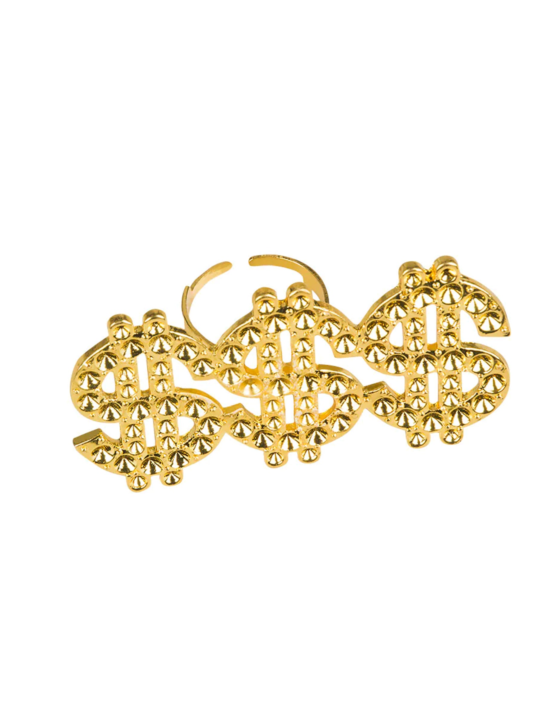 Ovaj prsten 1 Zlatni prst za odrasle sportovi znakovi 3 dolara s efektom rhinestone. Ovaj je prsten podesiv. Ovaj dodatak bit će savršen za dovršavanje vašeg blinga prerušenog tijekom prerušene večeri.