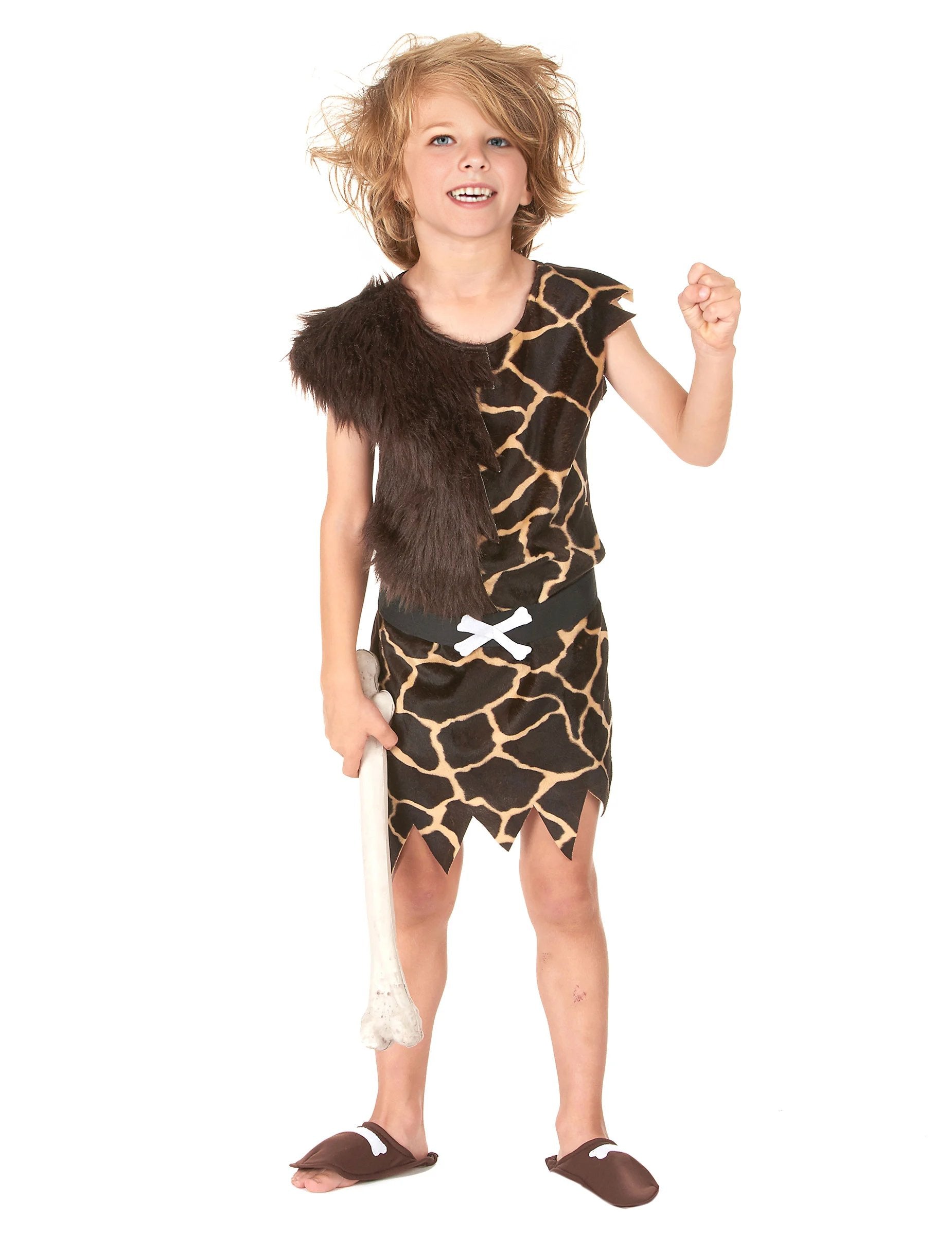 Ovaj uspravni prerušavanje iz prapovijesti je za djecu i uključuje tuniku, pojas i prekomjerne potrepštine (ostalo nije uključeno). Tunika je s vrlo kratkim rukavima rezanja u pilu kao dno tunike. Samo s prednje strane tkanina ima baršunasti dodir i otisak "žirafe". Lažna zvijer pokriva dio torza; Izrađena je od dugih smeđih sintetičkih dlačica. Remen je izrađen od debelog crnog filca, ukrašen s dvije kosti koje su prekrižene na prednjoj strani. Privezana je na leđa ogrebotinama. Konačno, prekomjerni pregledi predstavljaju oblik malih elastičnih papuča na leđima i pruženi još jedna elastika ispod sebe kako bi ih popravili na cipelama. U smeđoj tkanini obloženi pjenom, na vrhu su malene bijele kosti. Zbog čega se vaše dijete obožava da se pretvori u muškarca ili ženu s cro-magovima povodom emisije, karnevala ili za rođendansku užinu na temu prapovijesti!