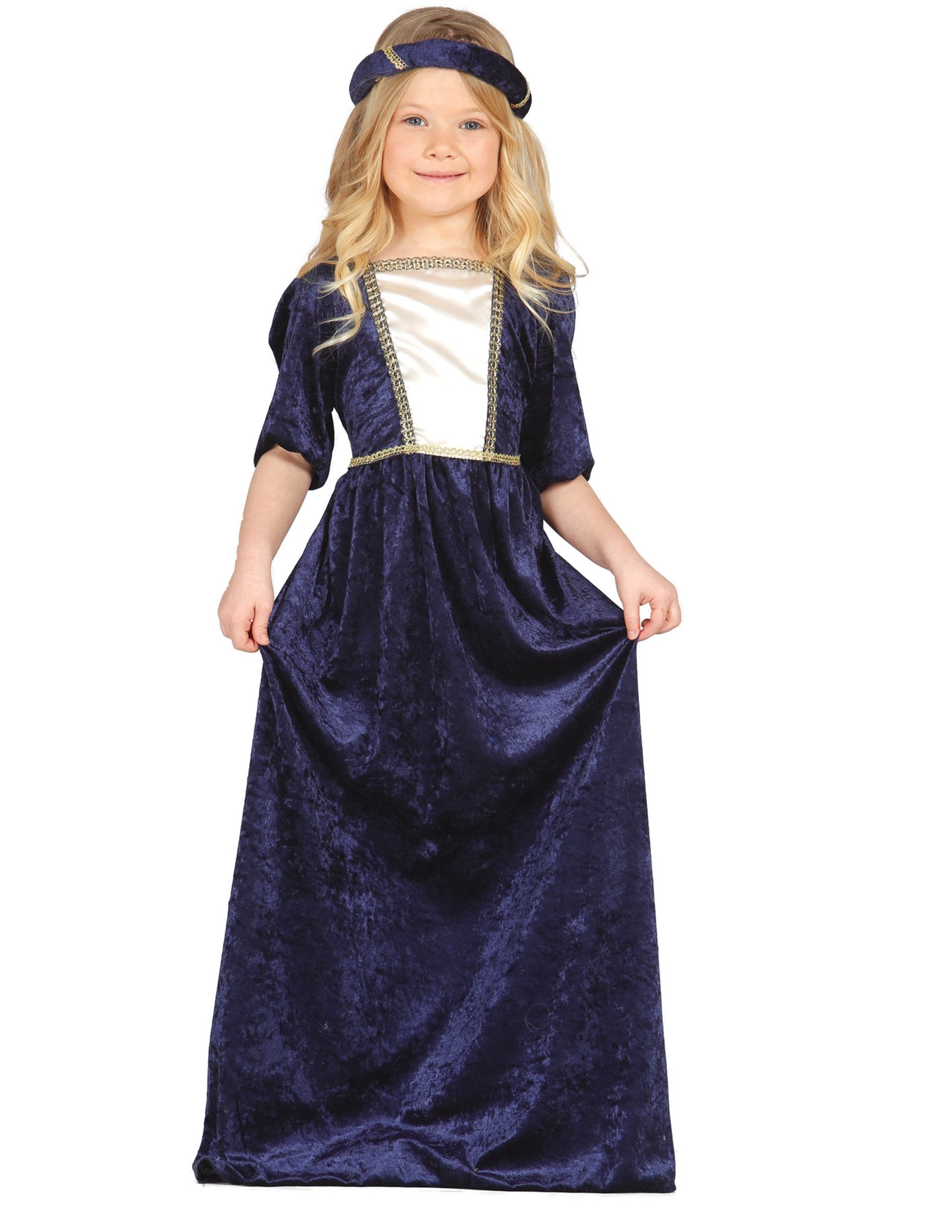 Ova plavo -srednjovjekovna kostim za djevojku sastoji se od haljine i trake za glavu. Mornarska haljina od baršunasta efekata je duga i ima kratke rukave i kvadratni ovratnik. Ukrasi se sa zlatnim završnim obradama i satenskom bijelom tkaninom s prednje strane, što ga čini vrlo elegantnim! Elastika u pogledu veličine omogućuje savijanje haljine. Velvet Effect mornarska traka za glavu poprima iste zlatne uzorke kao i haljina. Podstavljena je i stoga će biti vrlo ugodno za nošenje. Ova prerušavanje bit će savršeno za pretvaranje vaše kćeri u elegantnu srednjovjekovnu damu na karnevalu!