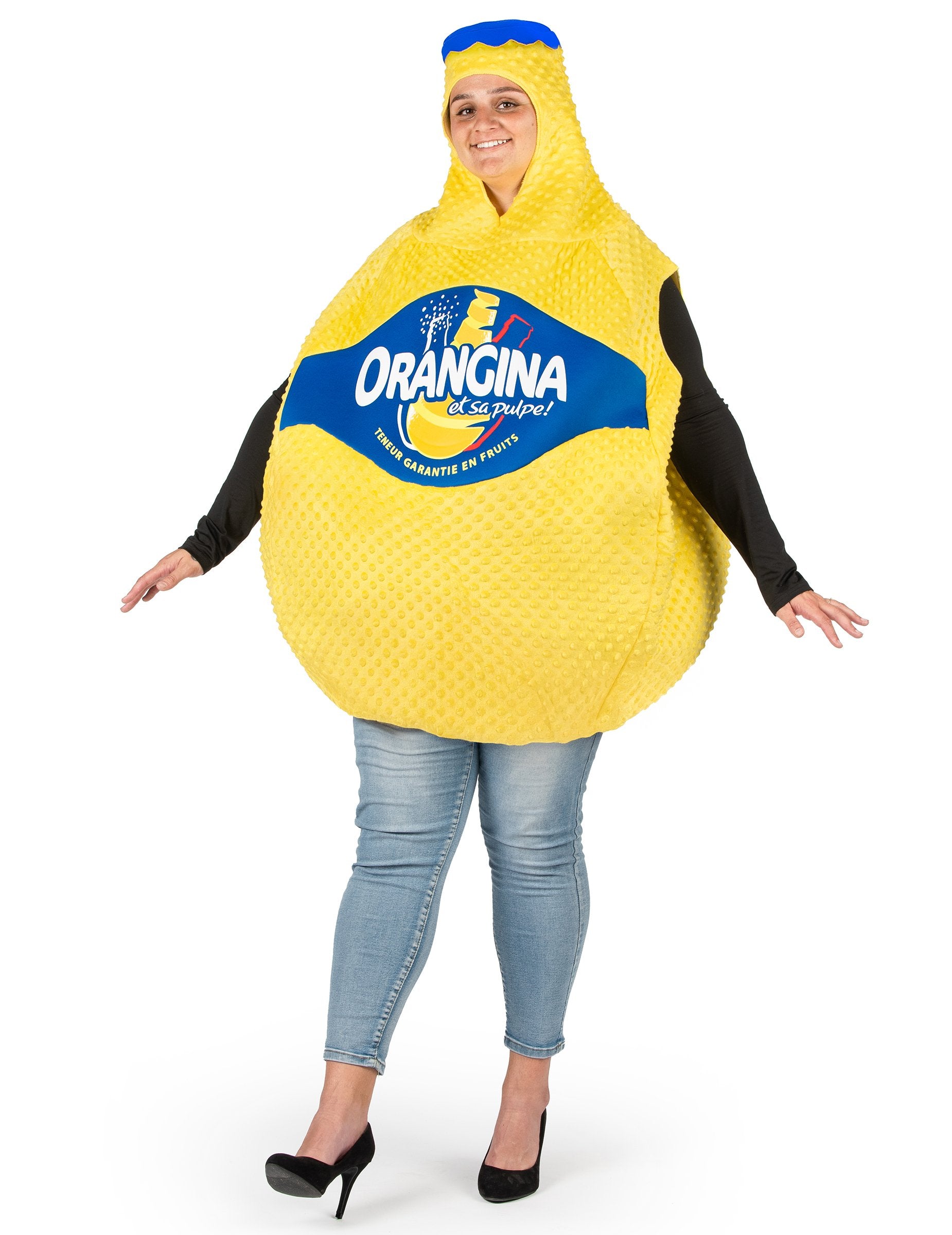 Ova kostim boca soda Orangina je za odrasle i pod službenom je licencom Schweppes. Njegov oblik je klasične boce Orangina u gustoj i mekoj žutoj tkanini. Mali reljefni mramori cijele navike koji se u leđima zatvara patentnim zatvaračem. Rupe su prisutne na nogama, rukama i glavama. Osim toga, kako bi se jamčio jedinstveni oblik ovih svjetski poznatih boca, uključen je obruč. Što savršeno slavi prikriveni događaj i pjevati "Ostanite živ, pijte Orangina!" 2017 Schweppes International Limited