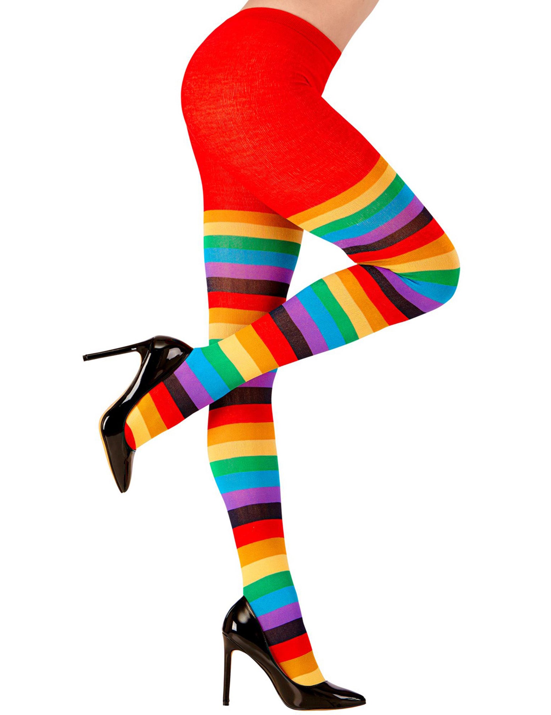 Ove veličanstvene višebojne tajice namijenjene su odraslima. Oni su u bojama duge (plava, ljubičasta, crvena, zelena, žuta, narančasta ...) i prilično su gusti. Nude se u jednoj veličini. Oni će biti savršeni za dovršavanje vašeg kostima klauna na karnevalu ili povodom prerušene večeri! Autorska prava Widmann SRL