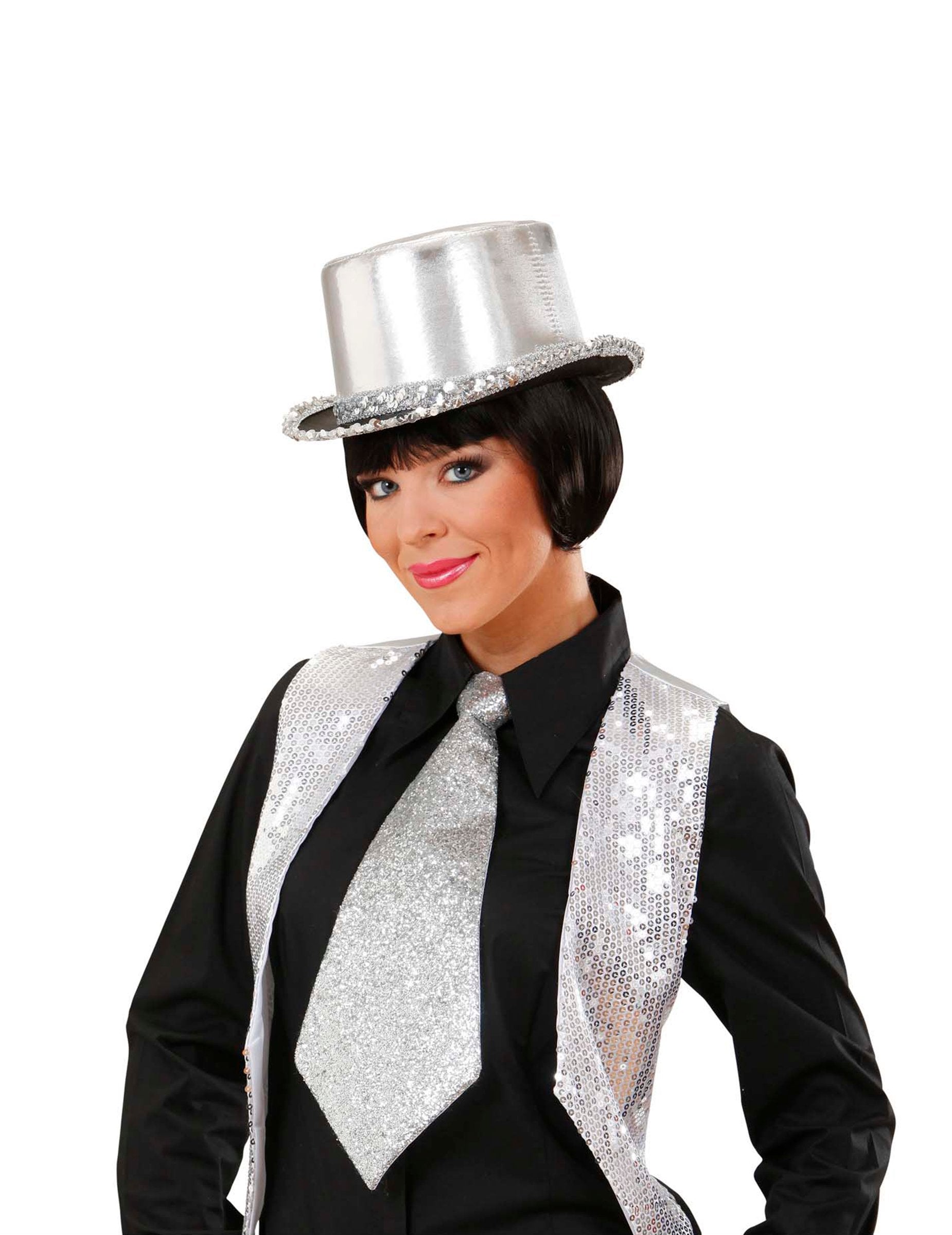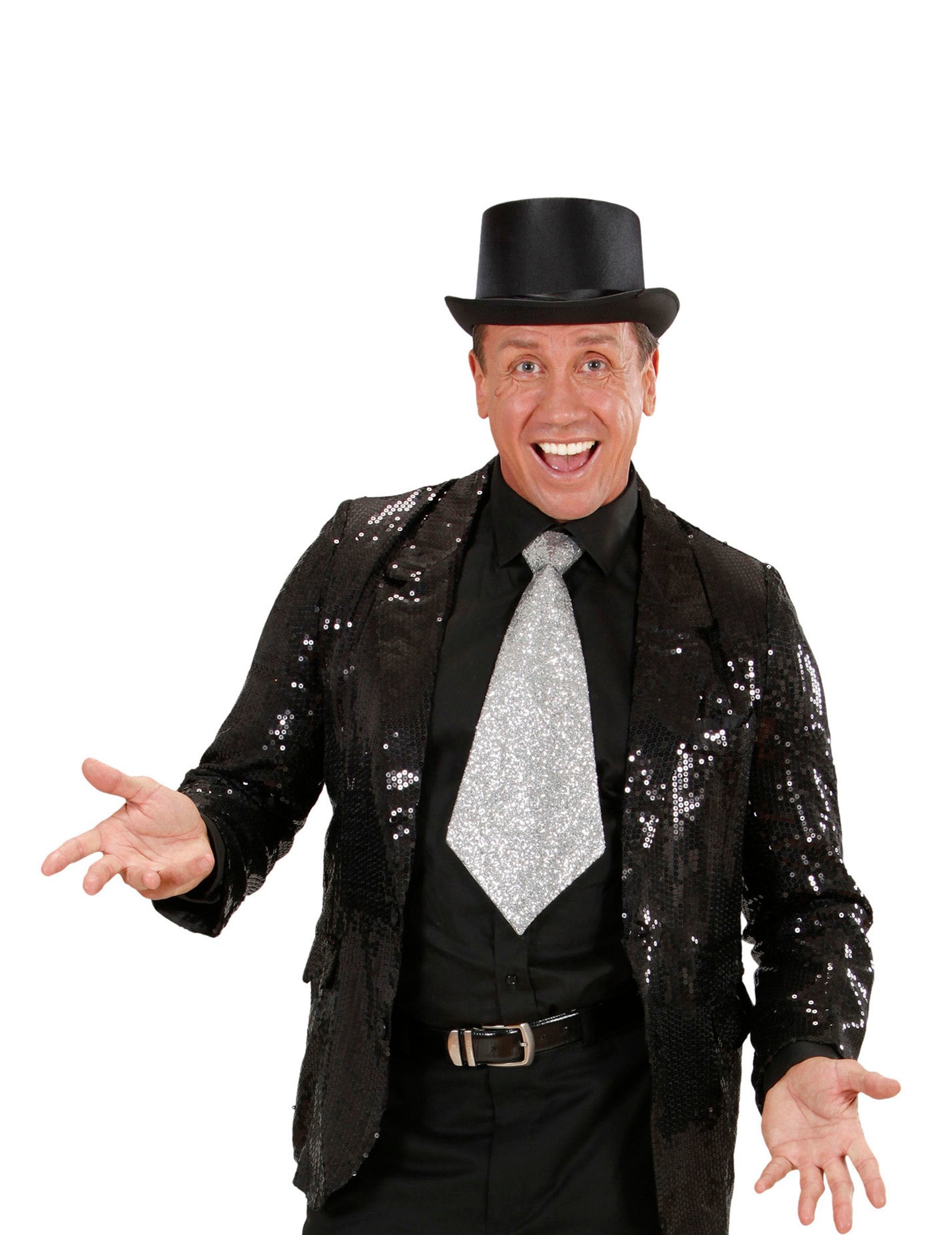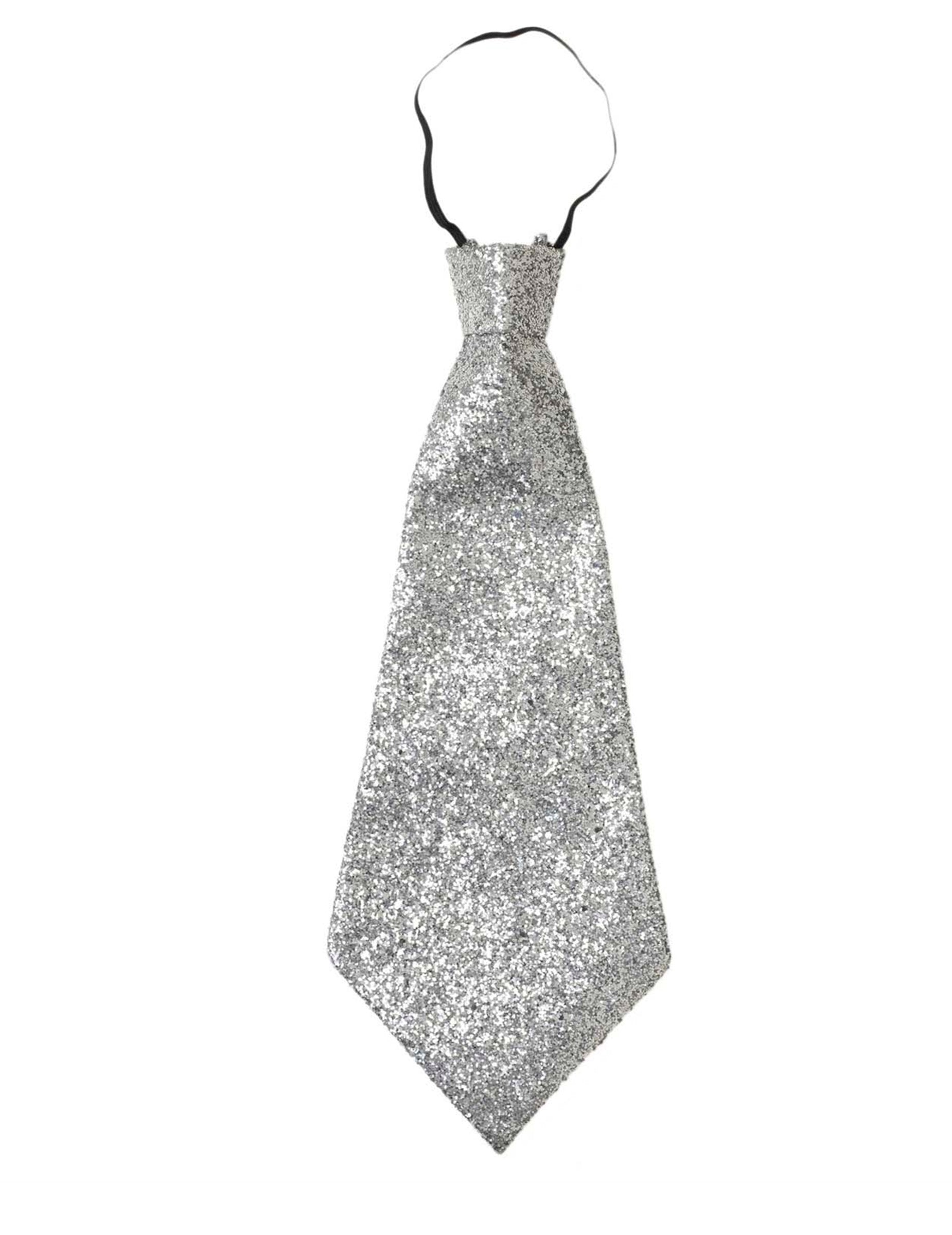 Ova srebrna kravata za odrasle prekrivena je srebrnim sjajem (ostaci nisu uključeni). Već je zapleten i održava se pomoću crne elastike da prođe oko vrata. Mjeri duljinu oko 40 cm i oko 15 cm na najširem. Ova vrlo kvalitetna veza bit će idealan dodatak za dovršavanje vaše odjeće za novu godinu ili za večer "Rhinestone + Paillettes"! Autorska prava Widmann SRL