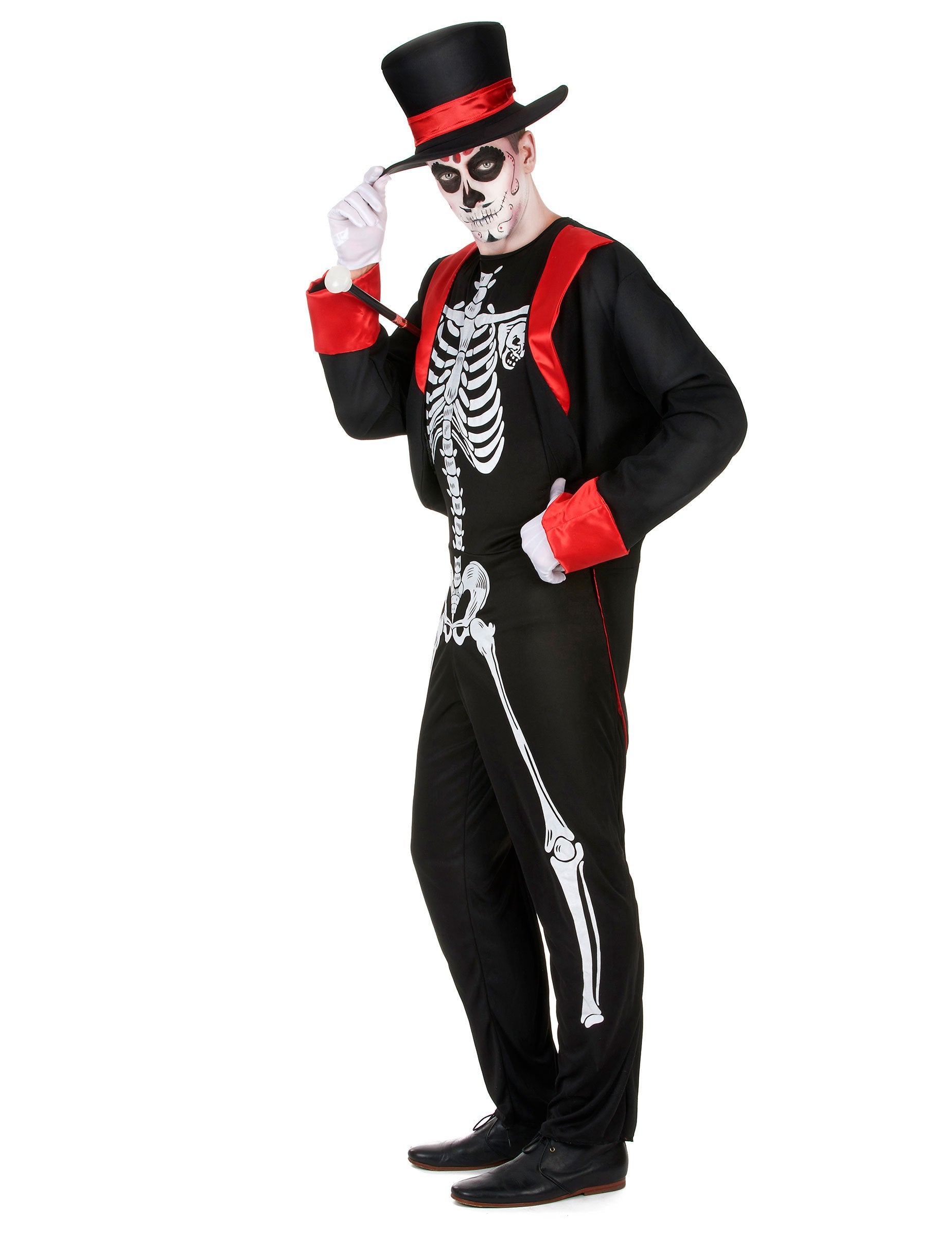 Ovaj kostim kostura Dia de los Muertos za muškarce sadrži kombinezon, sako i šešir.
