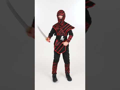 Ovaj kostim ninja za dječaka sastoji se od vrha, hlača, haube, plastrona i pojasa (cipele nisu uključene). Gornja i hlače su crne, s crvenim tigrama. Vrh se zatvara u leđima ogrebotinama, a hlače su elastične u struku. Plastron je crni i crveni. Držit će se na mjestu pomoću pojasa. Ovo je crno s bijelim kineskim znakom. Zatvara se velikom ogrebotinom. Na kapuljača je crna i crvena. Ima otvor za oči. Ovaj kostim ninja bit će savršen za karneval.