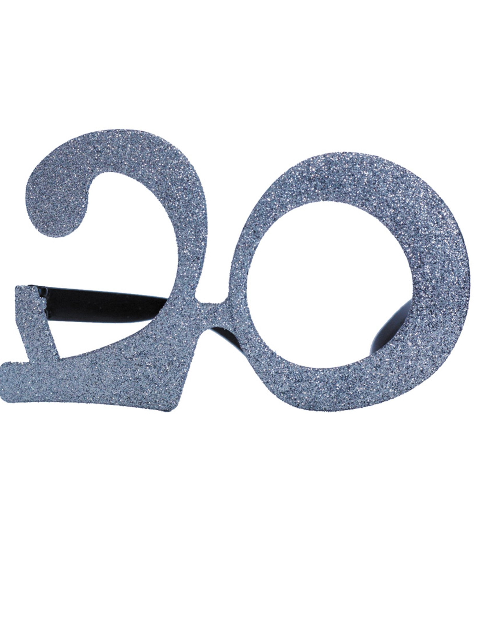 Ovaj par plastičnih naočala predstavlja sliku 20, u aluziji u dobi od 20 godina. Okvir je prekriven srebrnim šljokicama. Naočale su širine otprilike 14 cm. Nemaju naočale. Grane su crne i mjere približno 13,5 cm. Ovaj dodatak bit će ključan za vašu rođendansku zabavu za vaših 20 godina!