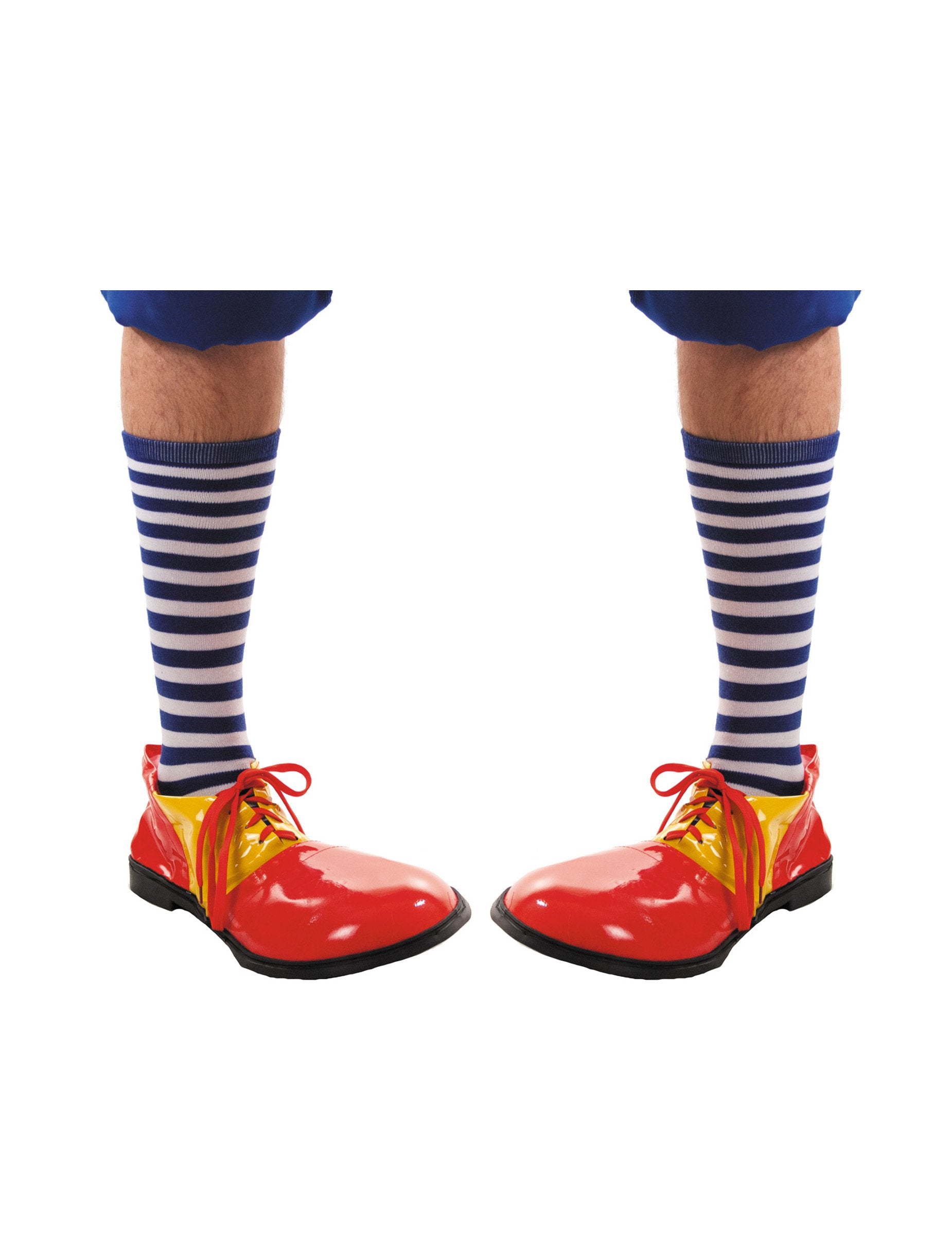 Ova serija sadrži par čarapa s plavim i bijelim prugama. Namijenjeni su odraslima i debeli su. Dovršite svoj klaun, mornar ili sportsku kostim za karneval, prikrivenu večer ili sportski događaj s ovim prugastim čarapama!