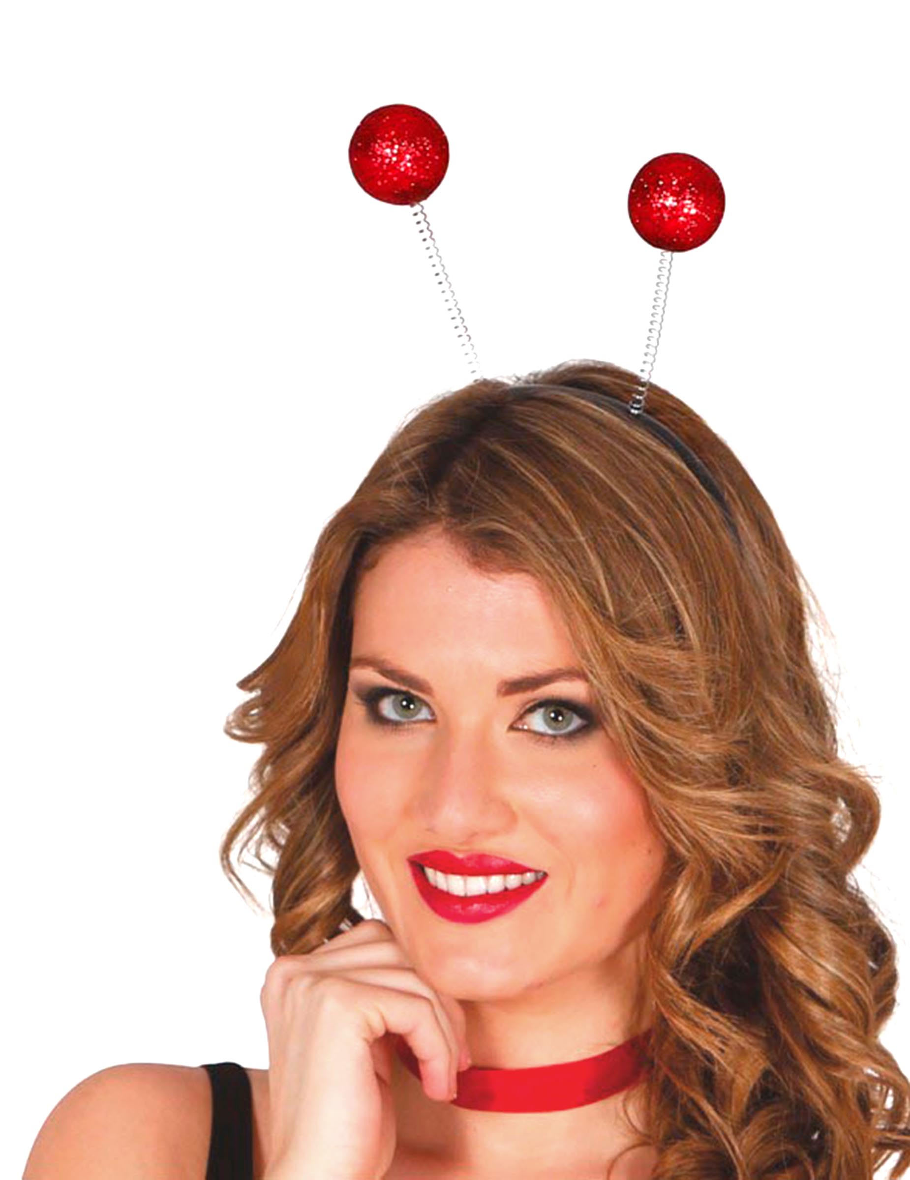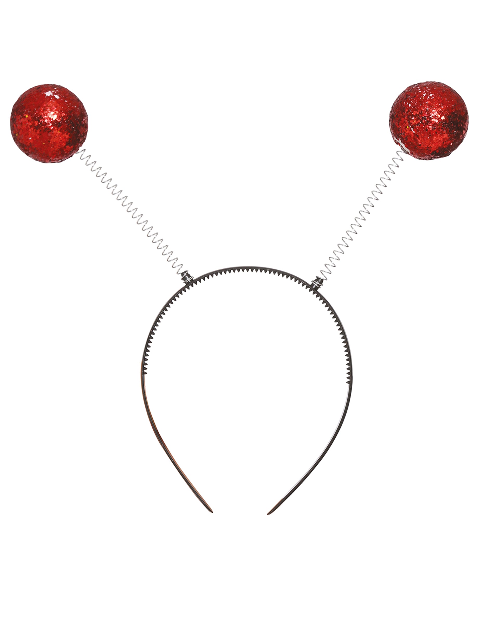 Ovaj dodatak je traka za glavu ukrašena crvenim svjetlucavim kuglicama. Kuglice se stavljaju na opruge i stoga su mobilne. Da biste dovršili kostim iz danje ili jednostavno zasjali u večernjim satima, ova traka za glavu je osnovni dodatak!