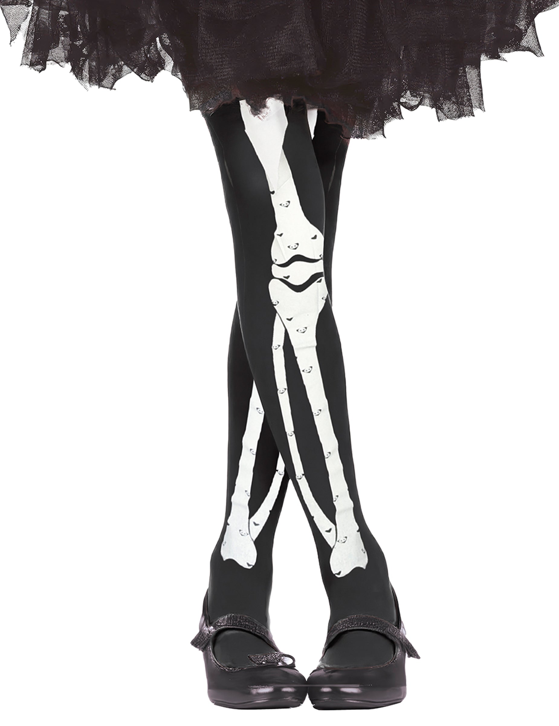 Ove dječje tajice su crne i imaju tisak koji predstavlja kostur (tutu nije uključen). Oni će biti savršeni za dovršavanje kostima vašeg djeteta za Noć vještica!