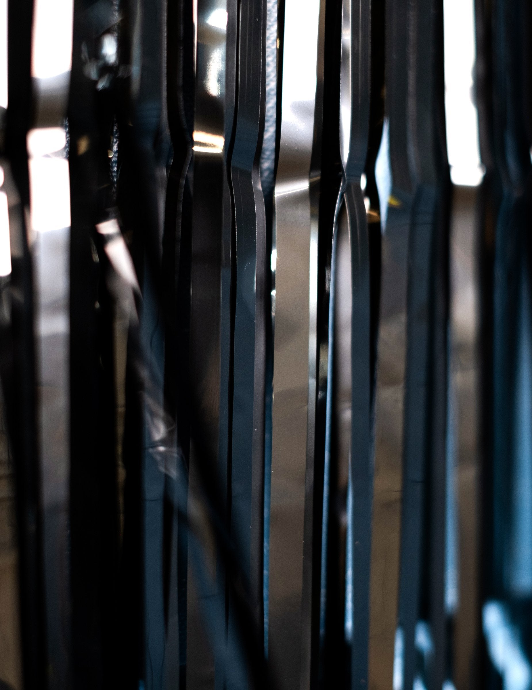 Ova pjenušava crna zavjesa mjeri 91 x 244 cm. Lako se popravlja na vratima zahvaljujući čvrstom ljepilu, zavjesa se sastoji od nekoliko vertikalnih i sjajnih traka koje vam omogućuju prolazak! Ova zavjesa bit će savršena za dovršavanje dekoracija sobe na temu 60 -ih ili 70 -ih!
