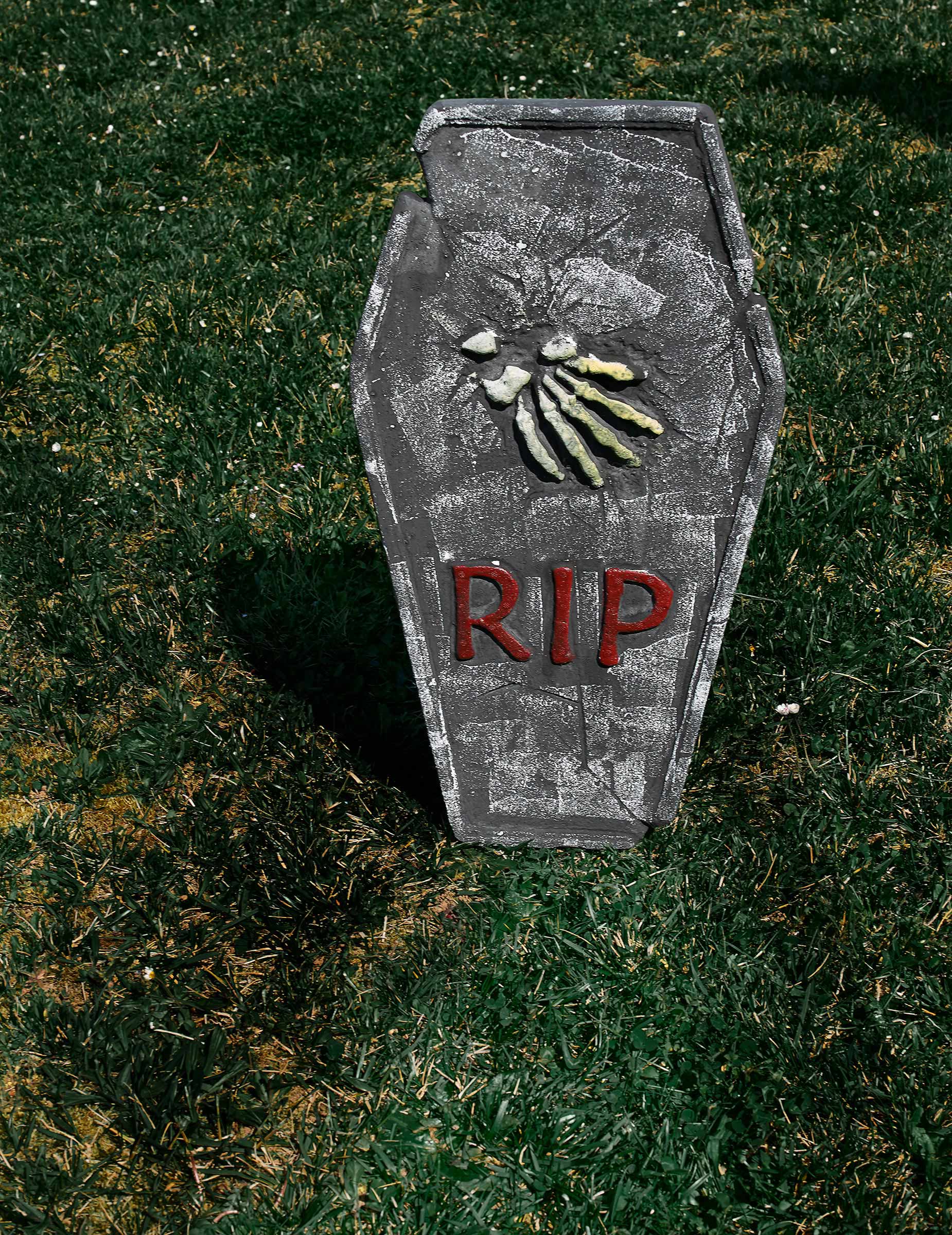 Emilie D. Joli Pierre tombale en polystyrène qui fait son effet dans notre entrée