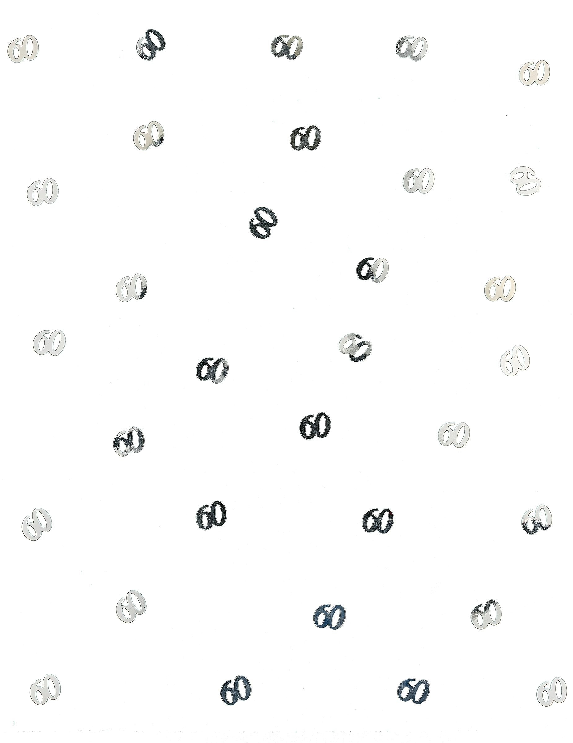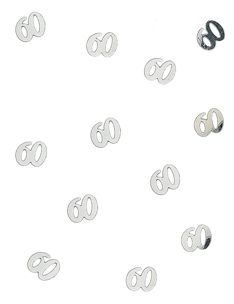 Ova vrećica sadrži 10 g drvenih stolnih konfeta. Predstavljaju broj 60 i srebrne su boje. Ovi konfeti mjere otprilike 1,5 x 1 cm. Možete ih posipati po stolu tijekom godišnjice vjenčanja ili proslaviti 60 godina!