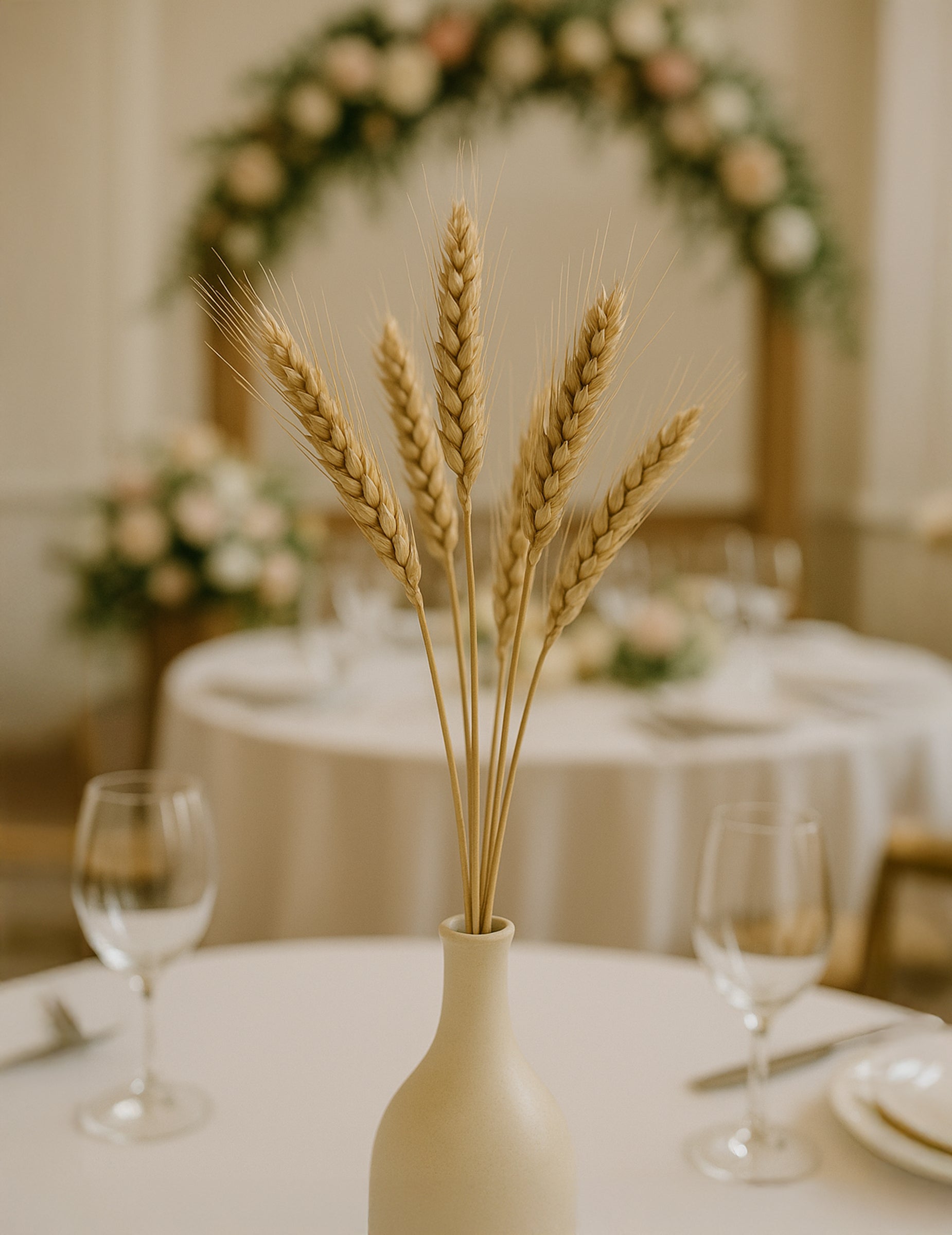 Ovaj buket čine oko 25 ušiju prirodne pšenice. Mjeri duljinu oko 60 cm. Ovaj rustikalni ukras bit će savršen za dovršavanje vašeg ukrasa stola povodom vašeg vjenčanja! To će donijeti prirodni i ljetni dodir na vaš stol!