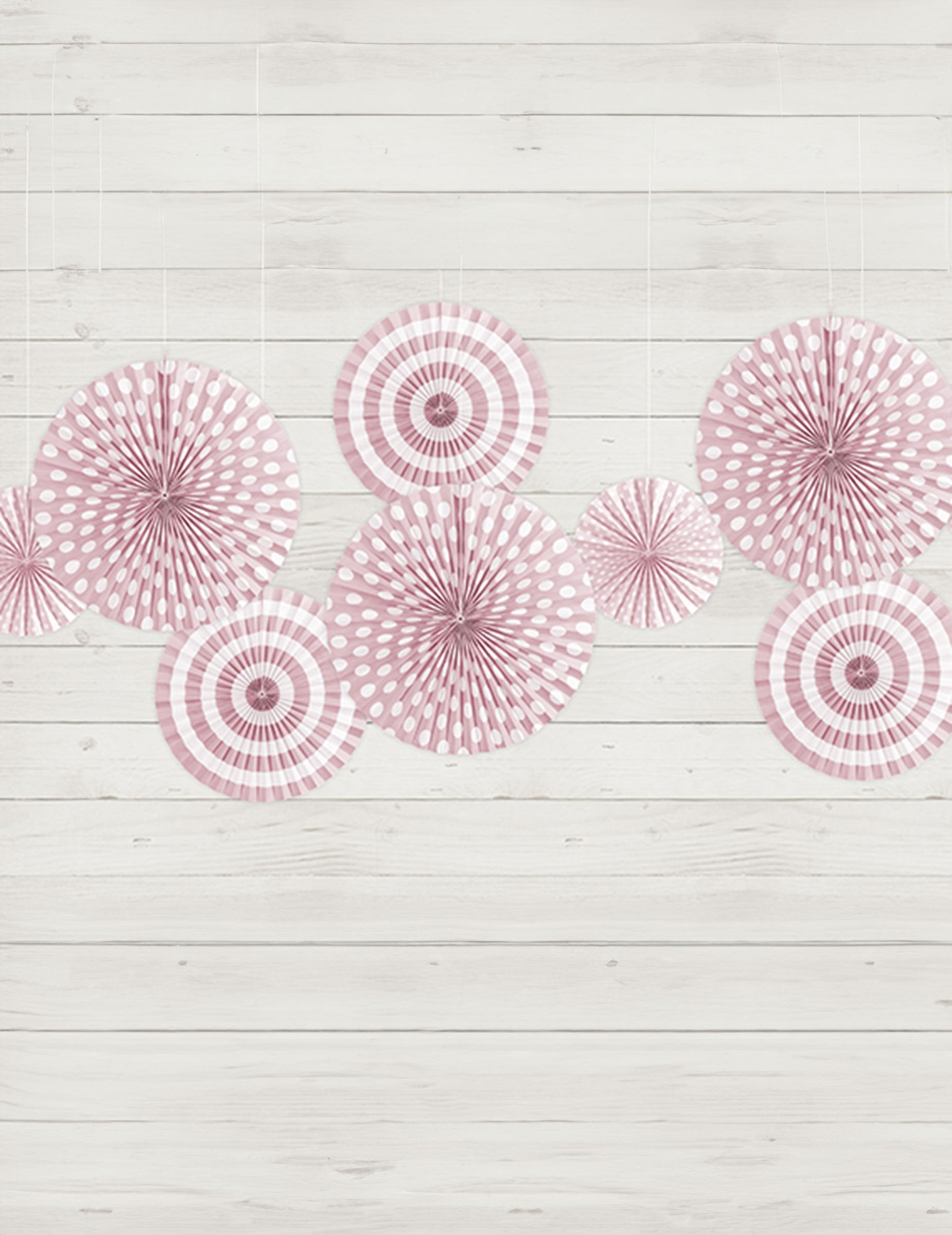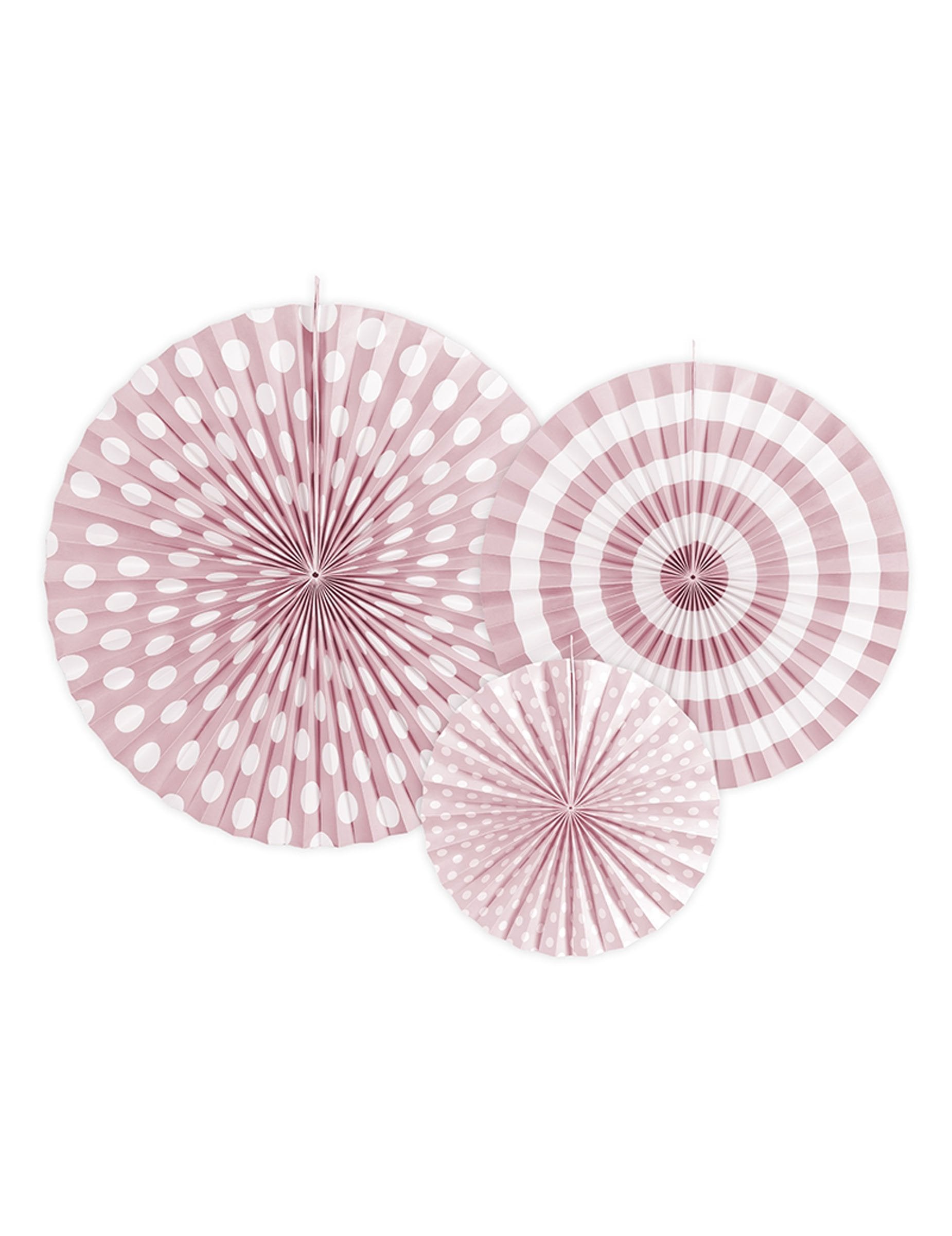 4 svjetloružičaste papirnate rozete 23, 32 i 40 cm s točkicama i prugama