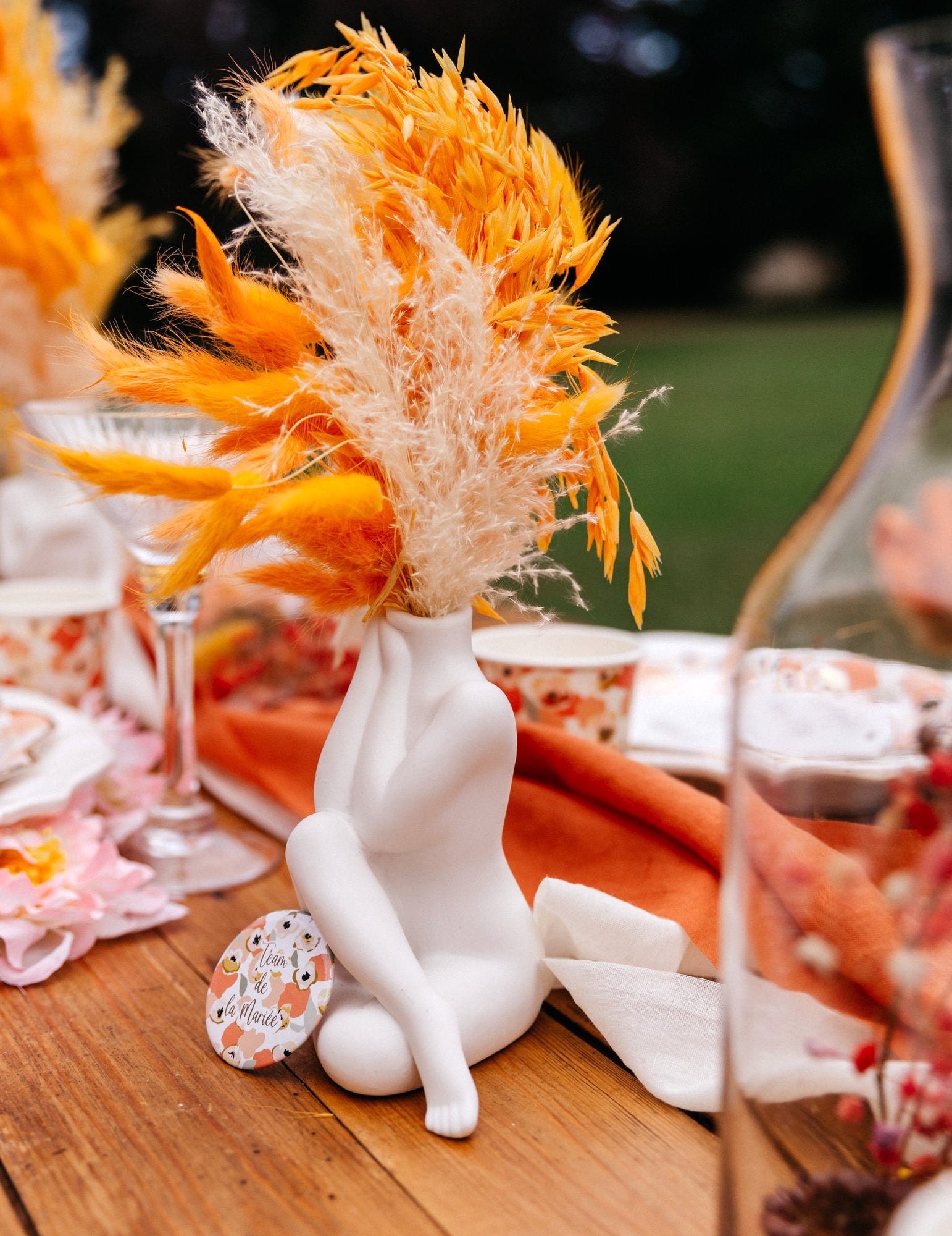 D'un poids de 100 g, ce bouquet d'avoine séché de 70 cm se distingue par sa couleur moutarde orangée chaleureuse. Que ce soit pour un mariage bohème ou pour créer une décoration d'automne authentique, ce bouquet s'intègre parfaitement dans un vase ou en ornement de table pour sublimer votre décoration de salle.