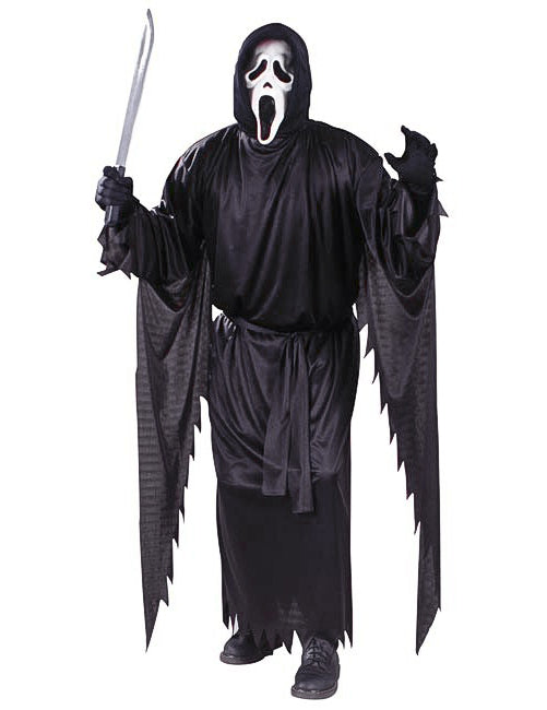 Ovaj kostim za vrisak sastoji se od haljine s kapuljačom, maskom i pojasom (rukavice i nož nisu uključeni). Ova službena licenca jednako je realna kao i u horor filmu! Haljina je crna s kapuljačom i dugim rukavima izrezanim na savjete. Pojas je vezan oko struka. Screav maska ​​predstavlja vrištav bijeli duh. Ovaj kostim za vrisak idealan je za Noć vještica.