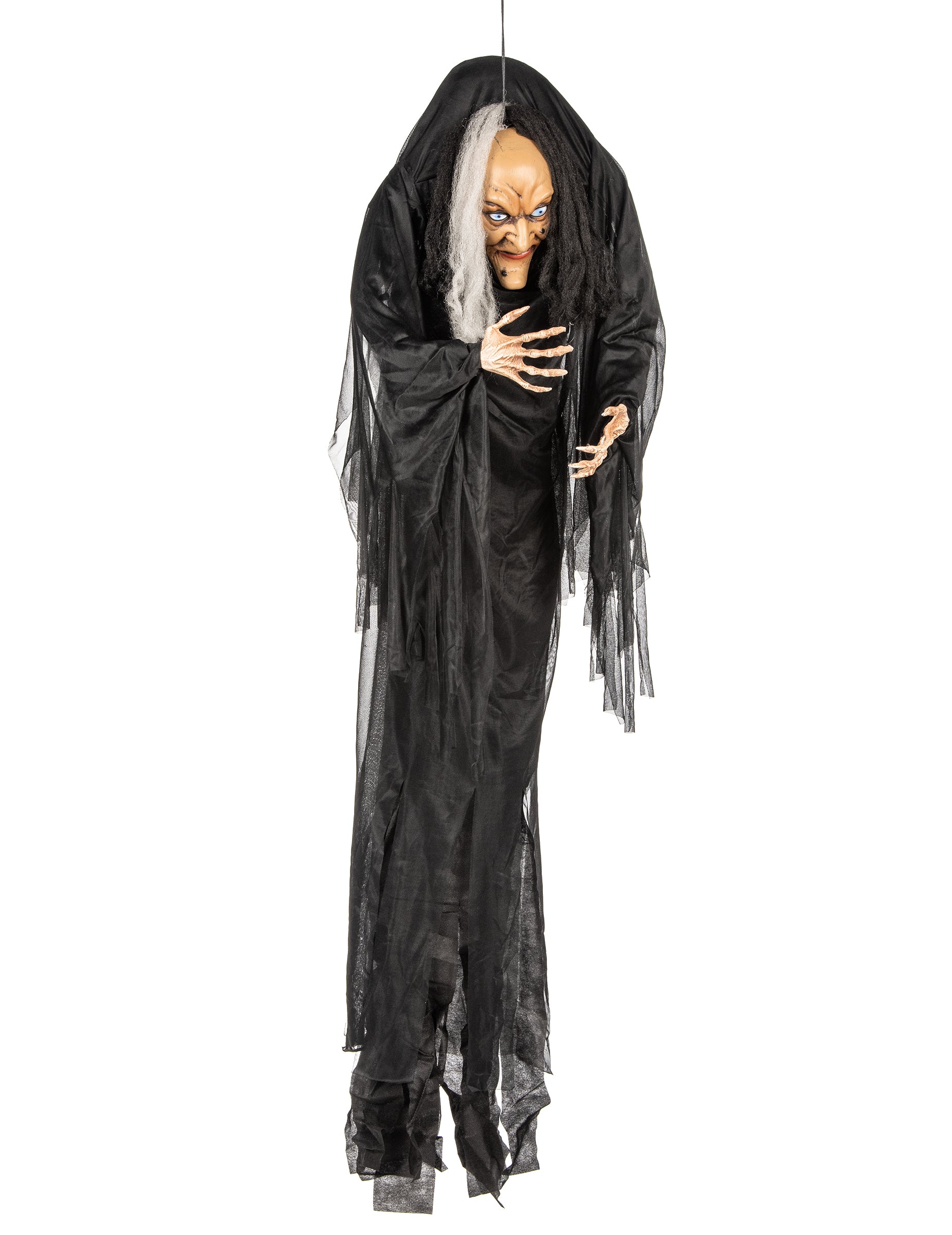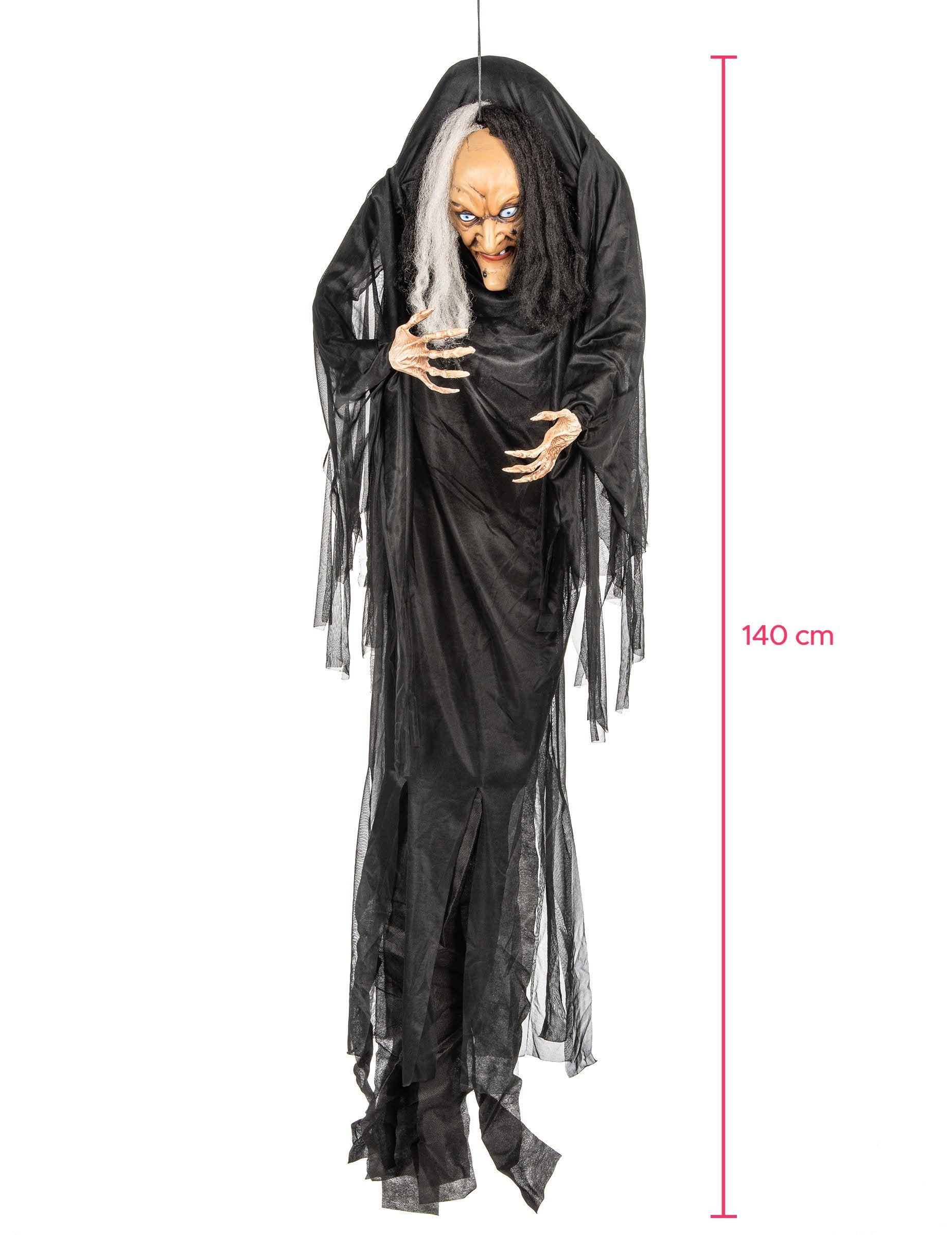 Ovaj život -vještica je zastrašujuća! Mjeri 140 cm. Obučena je u mračnu crnu haljinu, žvakaće je dugačke i crne s bijelim pramenima, lice je zlo, staro i naborano i probija te ledenim očima. Ova će vještica lediti krv vaših gostiju za Noć vještica! Autorska prava Widmann SRL