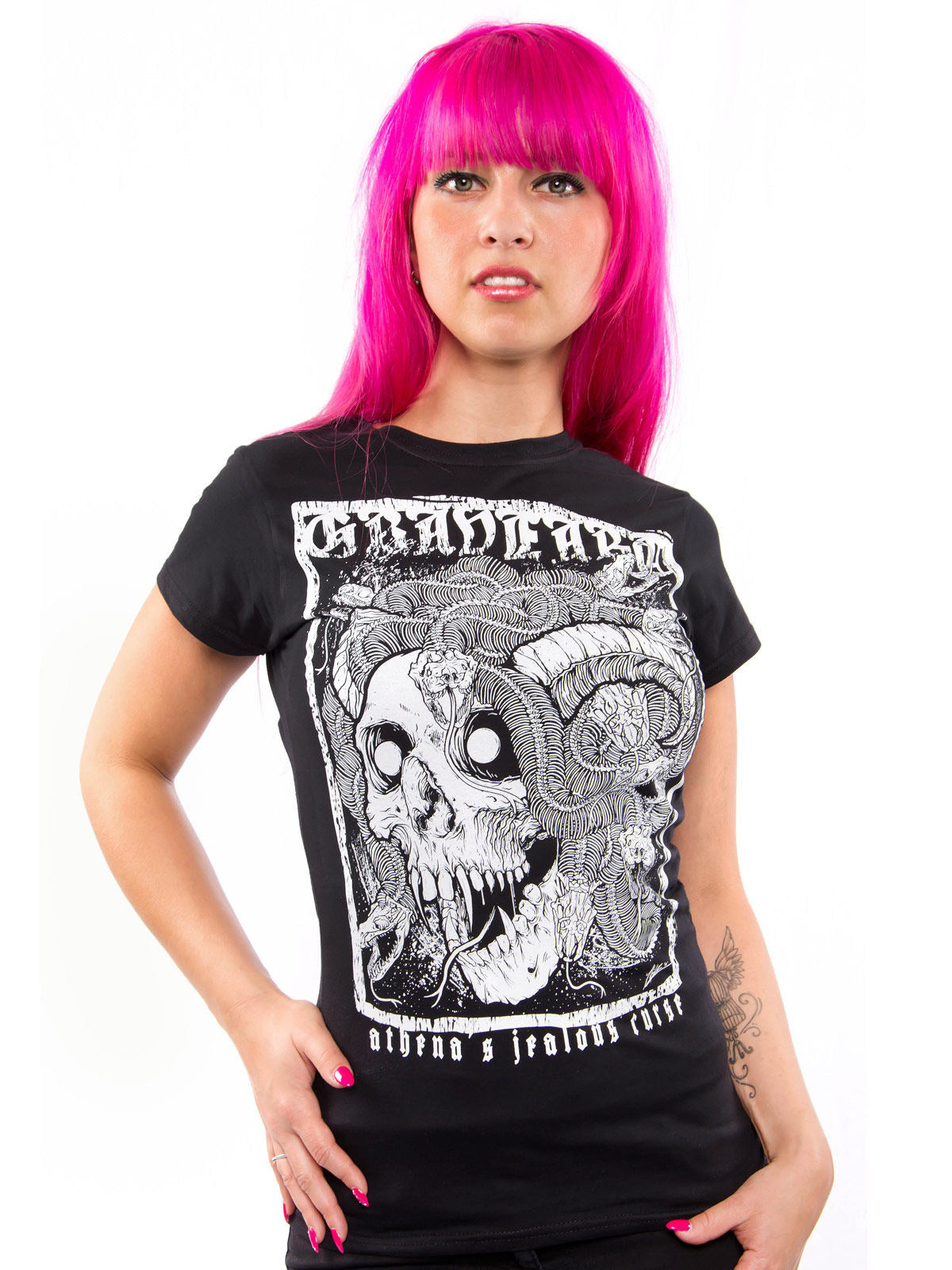 Ovaj crni ženski top s motivom lubanje idealan je za buntovan i tajanstven izgled. Ukrašen velikim bijelim motivom lubanje s rogovima i zmijama, vašoj odjevnoj kombinaciji dodaje kamen i tamni dodir. Njegov crno-bijeli kontrast privlačan je i savršeno ističe vaš stil. Udoban i jednostavan za kombiniranje s tamnim hlačama ili kratkom suknjom, ovaj top brzo će postati ključni komad u vašoj garderobi. Savršen za Halloween zabavu!