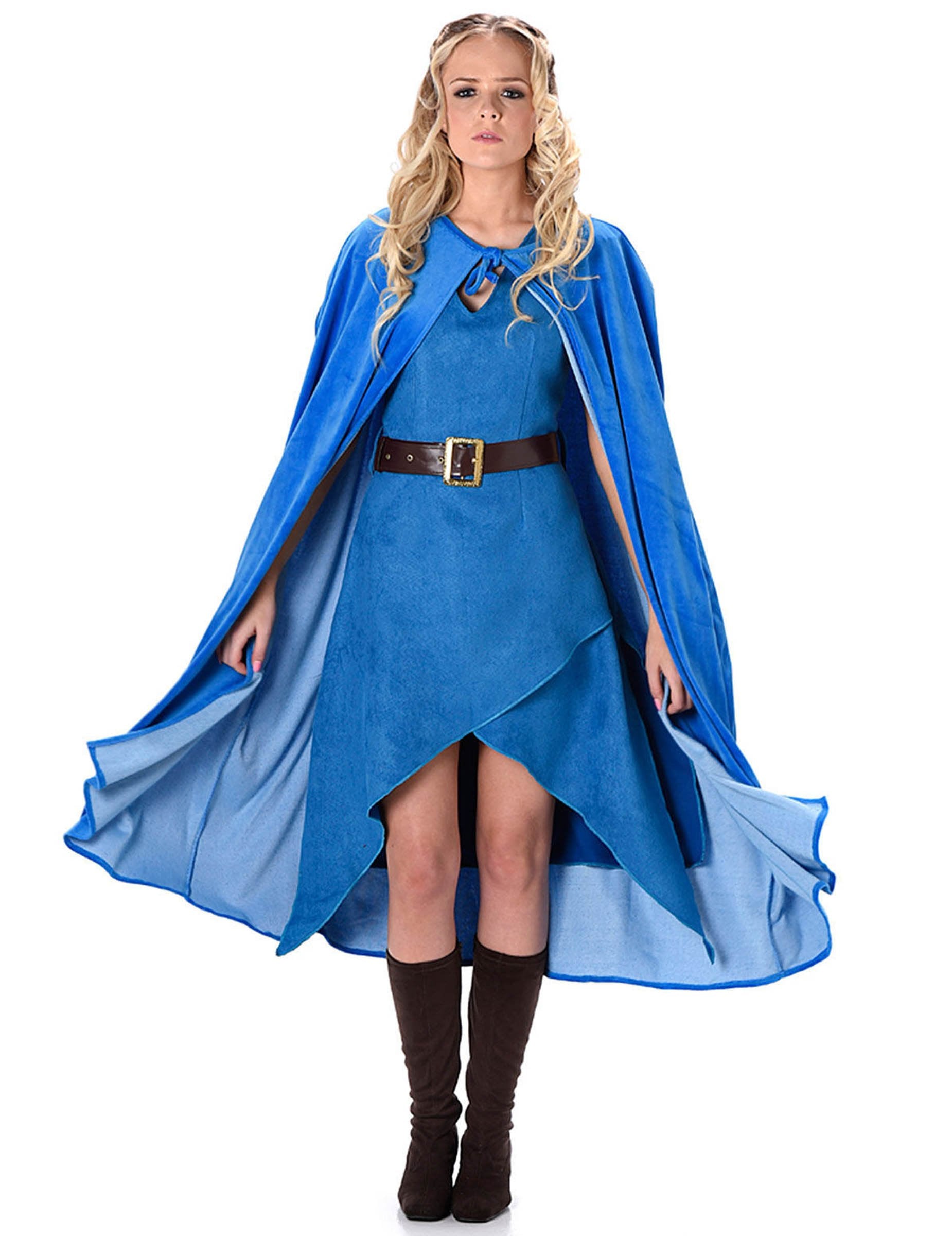 Ovaj srednjovjekovni ratnički kostim za žene sastoji se od haljine i ogrtača. Srednjovjekovna V -nona haljina je asimetrična i kratka da bi otkrila svoje noge. Prilagodi se integriranim smeđim pojasom. Dugi ogrtač koji odgovara haljini stiže na razinu vašeg teladi. Ova srednjovjekovna haljina Warrior Queen idealna je za karneval, za srednjovjekovni festival ili večer na temu fantastične TV serije.