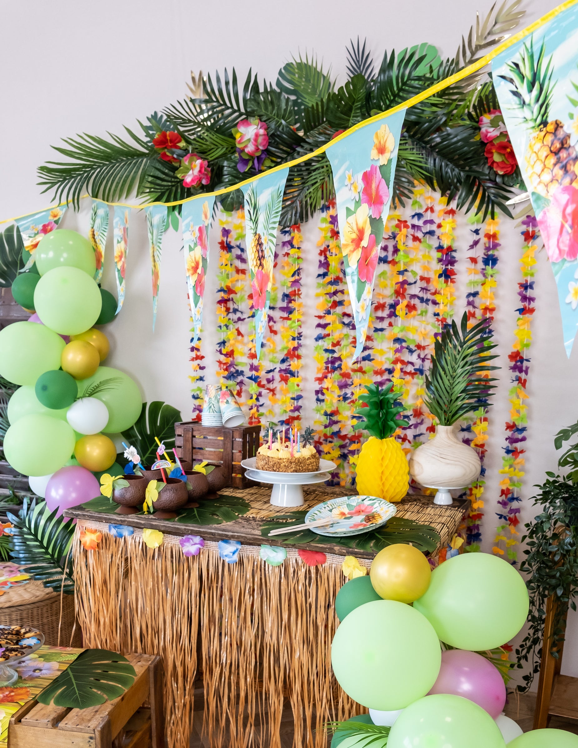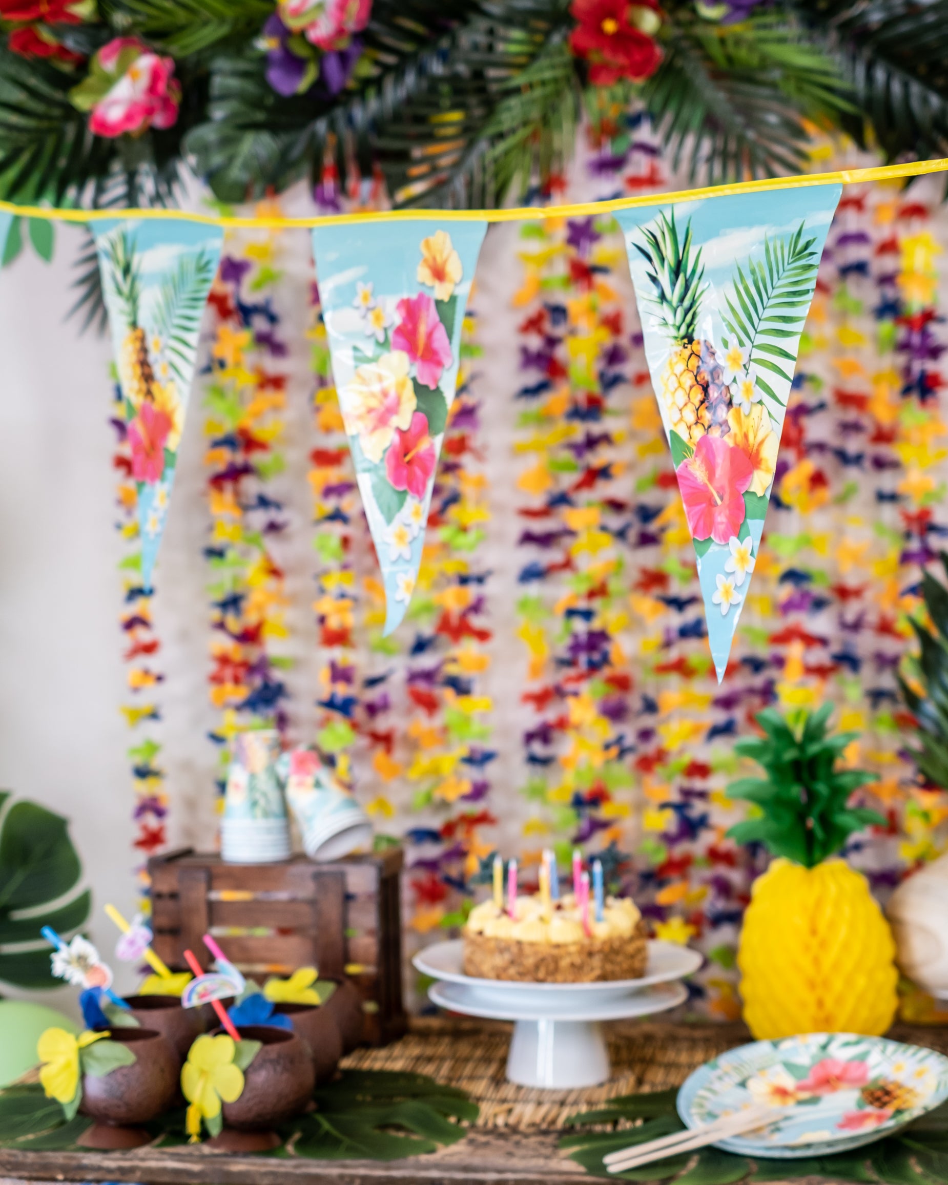 Ovaj vrhunski vijenac sastoji se od velikih finih i fleksibilnih plastičnih zastavica, duljine 23 cm duljine 33 cm. Jednom kada se odvaja, Gurlande mjeri 6 metara i ukrasit će prilično havajske cvijeće, vašu unutrašnjost ili vanjštinu tijekom zabave na temu Havaja!