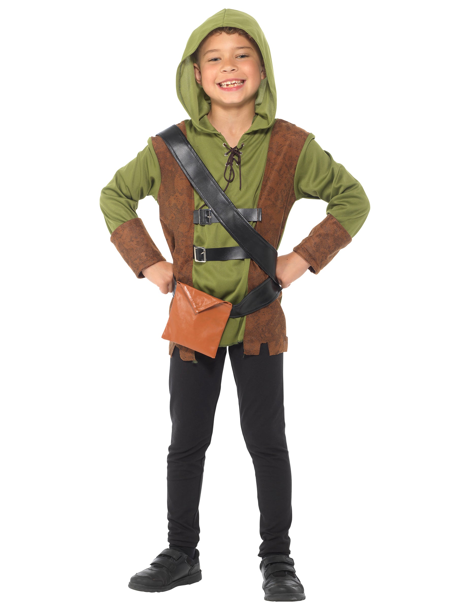 Ovaj muški drveni prerušavanje za dječaka sastoji se od vrha s kapuljačom, prsluka, privjesaka, pojasa i čizama (mač, hlače i cipele nisu uključeni). Vrh s kapuljačom je zeleni, a rub rukava smeđi. Smeđi prsluk je bez rukava i šiva se preko vrha s kapuljačom. Naramenice su crne i imaju džep. Što se tiče čizama, one su smeđe. Ovaj će set biti idealan za vašeg sina za prerušenu zabavu ili karneval!
