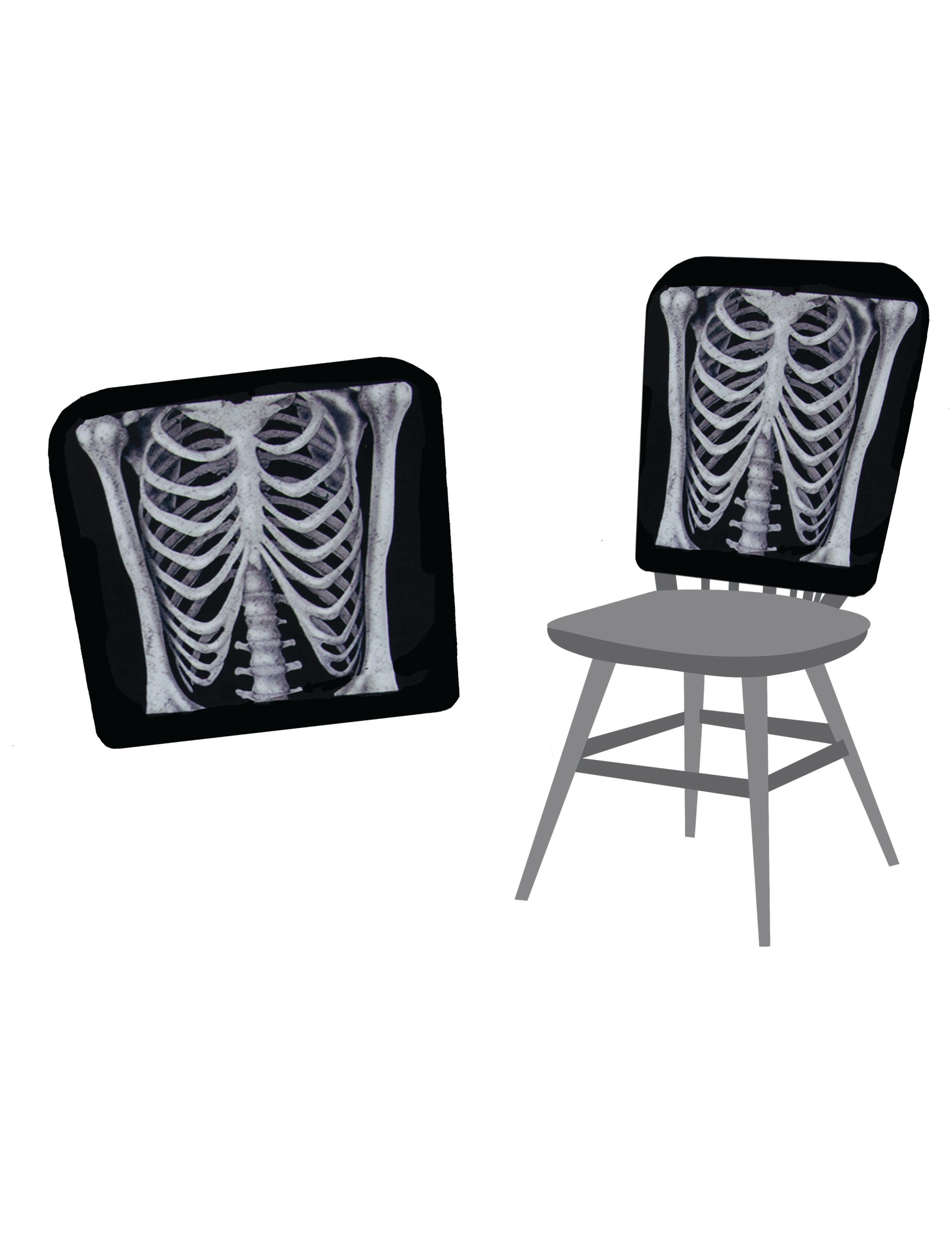 Ovaj poklopac stolice mjeri otprilike 38 x 48 cm. Crna je s kosturnim otiskom. Stvorite zastrašujuću atmosferu ukras za svoju večer za Noć vještica s ovom naslovnicom kostura!