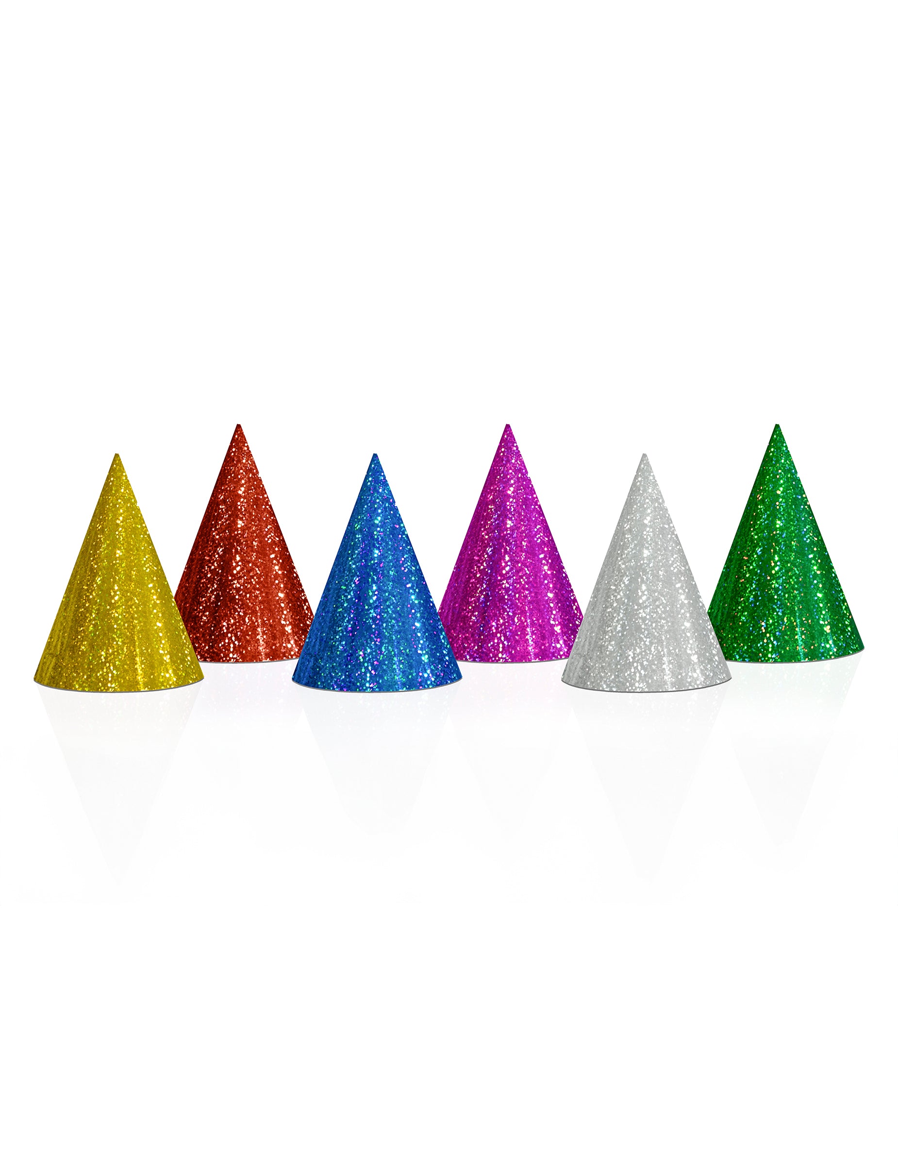 Ova serija sadrži 20 šarenih holografskih gozba. Napravljeni su od kartona, oštrog oblika i imaju bijelu elastiku koja će proći ispod brade koja im jamči dobru podršku. Žute su, crvene, plave, ljubičaste, srebrne ili zelene boje s sjajnim i blistavim refleksijama. Viši su oko 16 cm i promjera 10 cm u podnožju. Ovi šeširi će biti savršeni za druženje cijelu noć! Neophodno za rođendan ili za novogodišnju zabavu!