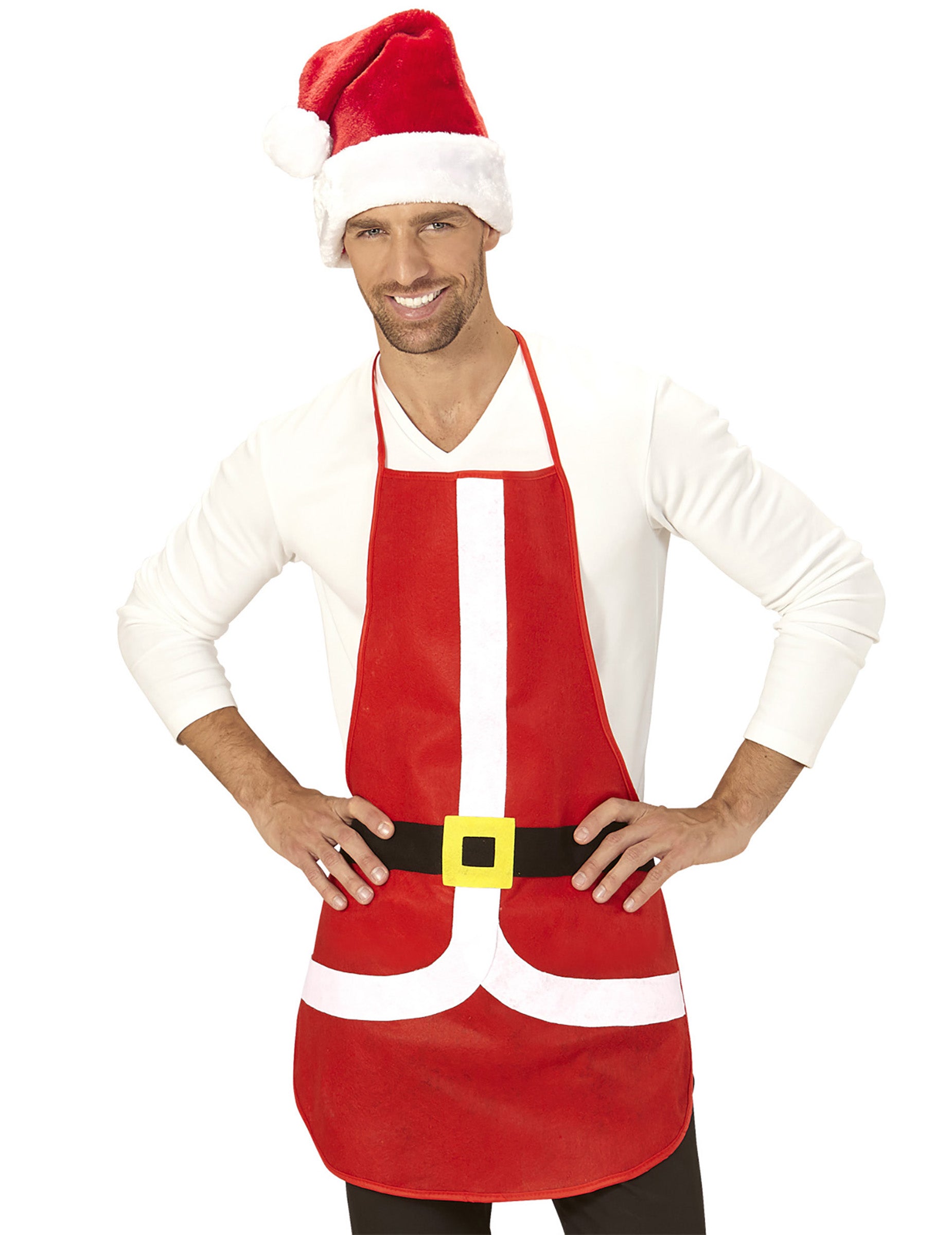 Ova pregača, prodana sam, mjeri otprilike 75 cm x 54cm. Ova pregača je božićna pregača u bojama Djeda Mraza. Ova pregača je, dakle, crvena s dojmom bijelih traka koje oponašaju rubove jakne. Konačno, za efekt još vjerniji ovom amblematičnom karakteru koji je Djed Mraz, dojam crnog pojasa sa žutom petljom prisutan je na razini veličine. Ova pregača bit će savršena za male kuhare koji će izmišljati dobra mala jela za blagdanske sezone!