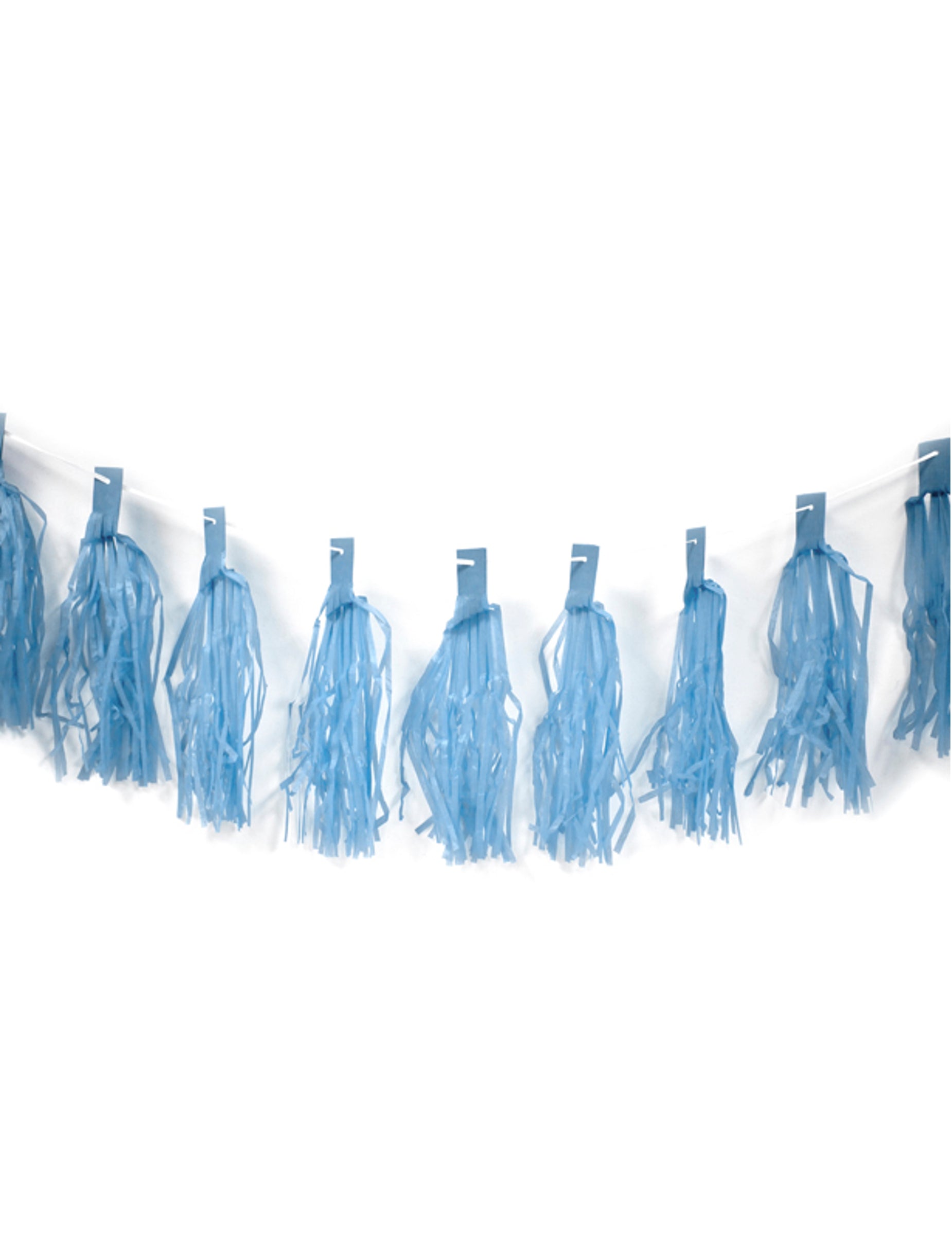 Sublimez votre espace avec cette guirlande tassel dotée de 20 pompons bleus répartis sur une longueur de 4 mètres.