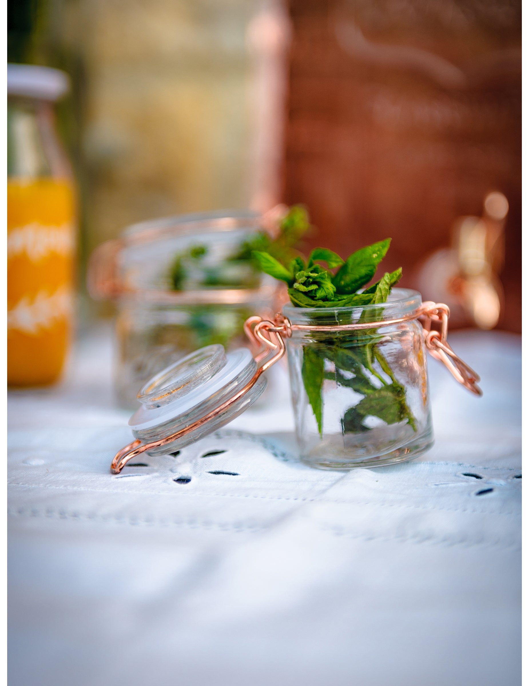 Ce petit pot en verre au style vintage se présente comme un mini bocal à conserve au charme authentique. Avec ses dimensions de 4 x 6 cm et son volume de 40 ml, il est doté d'un système de fermeture élégant en métal rose gold. Cet accessoire est idéal pour offrir des dragées ou des gourmandises lors d'un mariage, d'un baptême ou d'un anniversaire. Il apportera une touche raffinée à la décoration de votre candy bar.