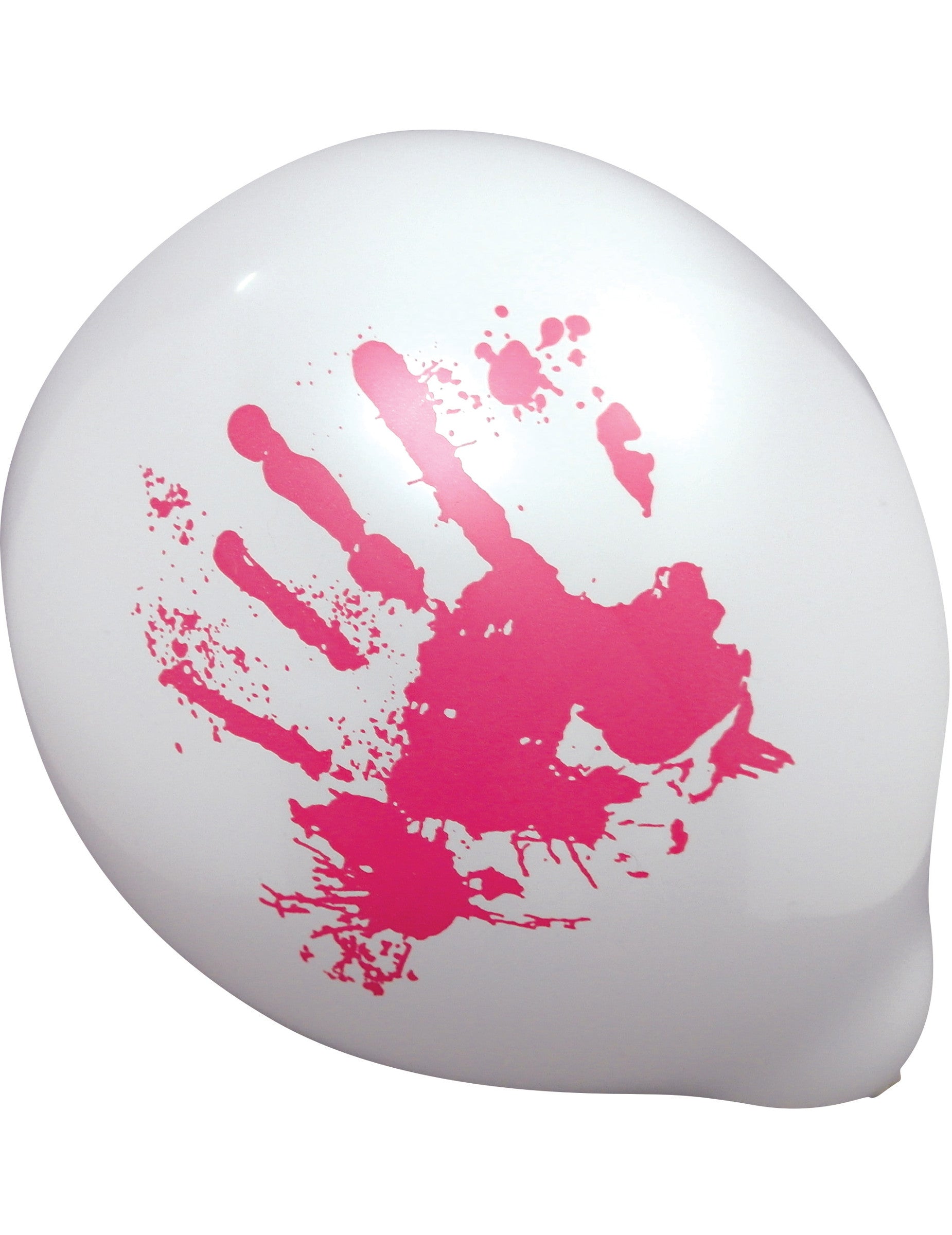 Ova serija sastoji se od 10 balona. Baloni su bijeli s krvavim rukama ispisanim na njemu. Oni mjere oko 23 cm. Ovi krvavi baloni bit će savršeni za ukrašavanje vaše unutrašnjosti tijekom Noći vještica ili za večer na temu užasa.