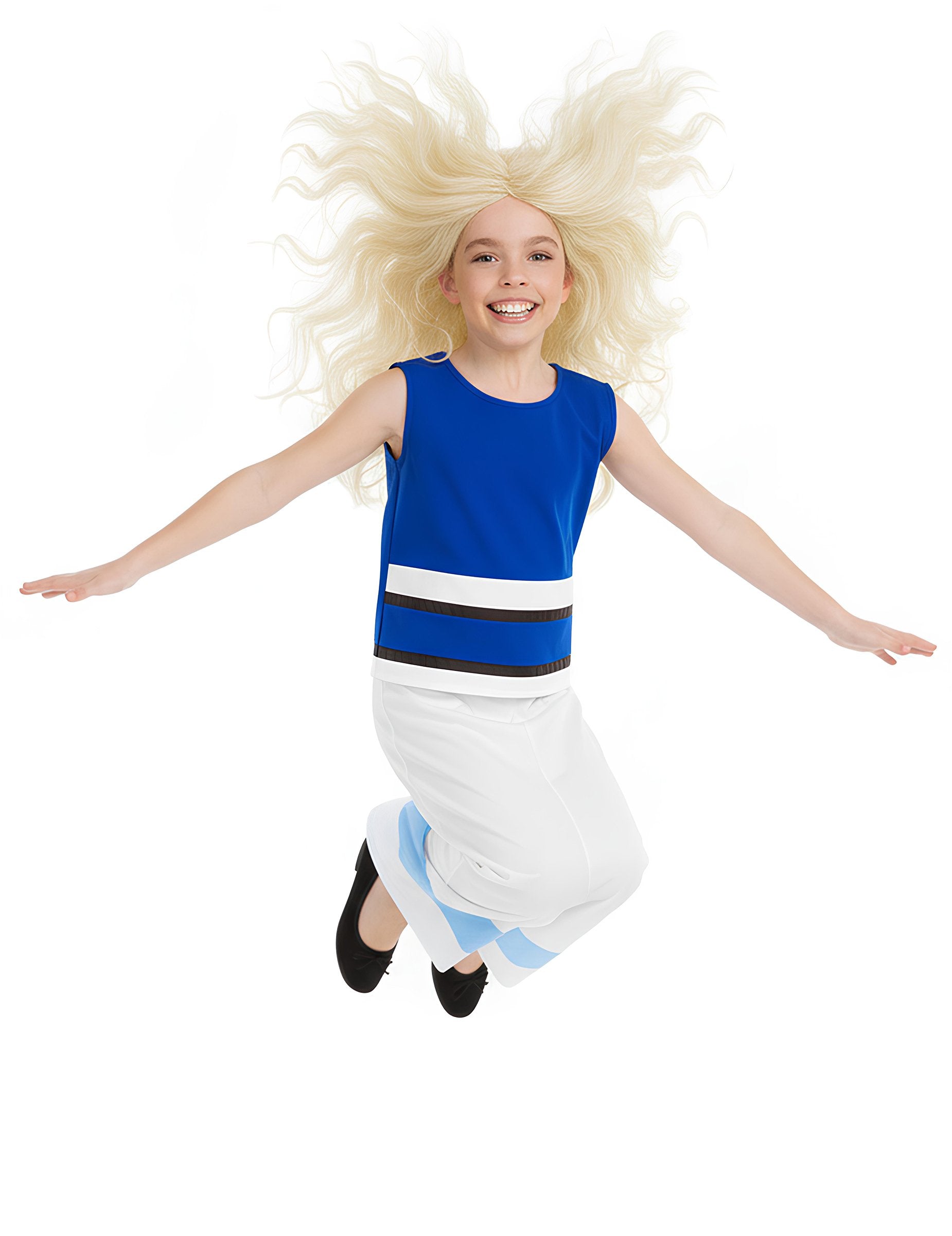 Ovaj službeno licencirani kostim Asterixa i Obelixa Falbale za djecu uključuje top i suknju. Top kratkih rukava je plav, ukrašen crno-bijelim obrubom kako bi odgovarao izgledu ove šarmantne galske djevojke. Duga, raširena suknja ima tirkizni pojas, savršeno nadopunjujući ovaj prekrasni kostim za Abraracourcixovu nećakinju. Pretvorite svoju kćer u prekrasnu galsku djevojku s ovim kostimom Falbale za karneval ili kostimiranu zabavu s temom Asterixa i Obelixa.