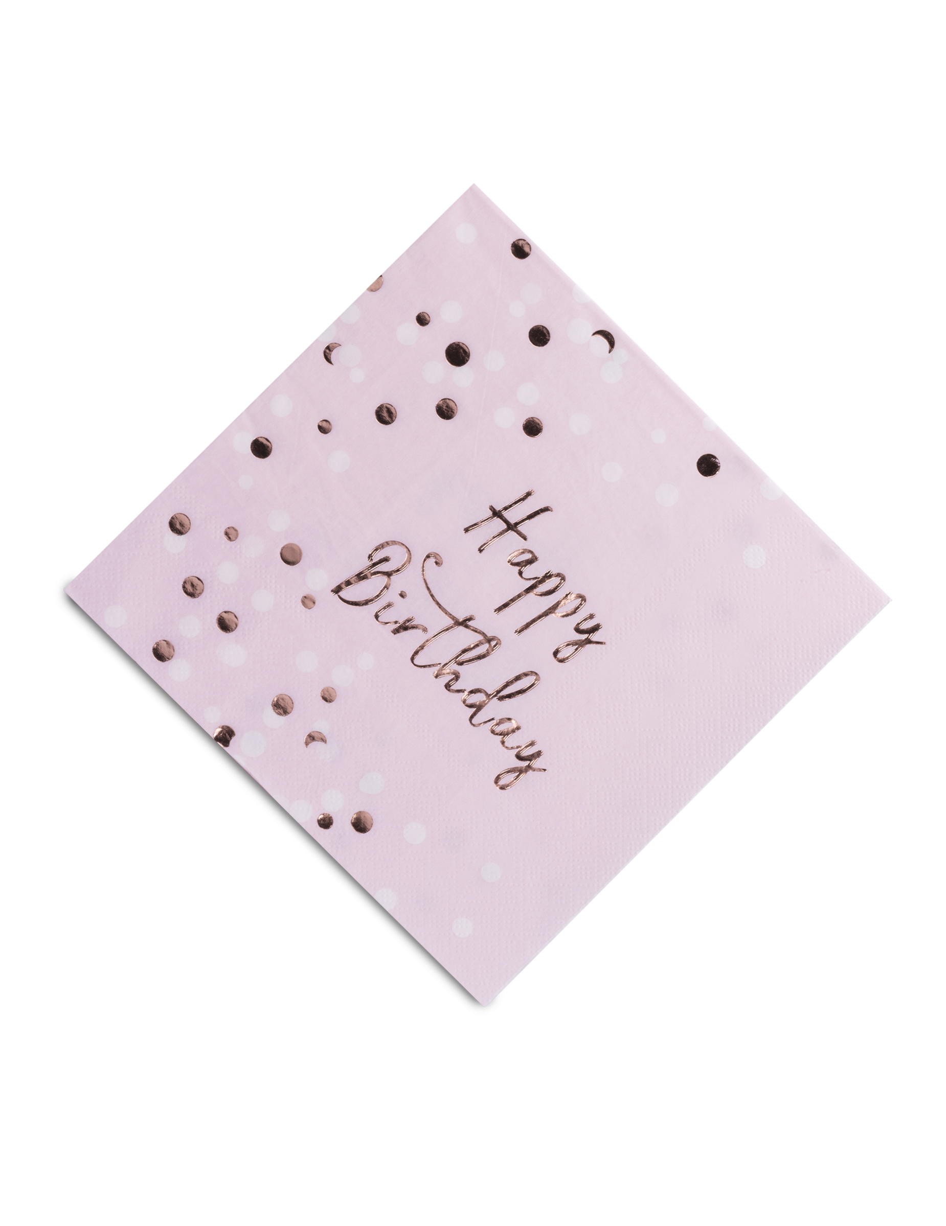 Ovi ručnici prodaju se od 16. Oni se odvijaju 33 x 33 cm. Ružičasti su i ukrašeni bijelim graškom i ružičastim zlatom. Također su ukrašeni natpisom "Sretan rođendan". Ovi ručnici bit će savršeni za ukrašavanje vašeg stola tijekom rođendana u savršenom zlatnoj ruži!