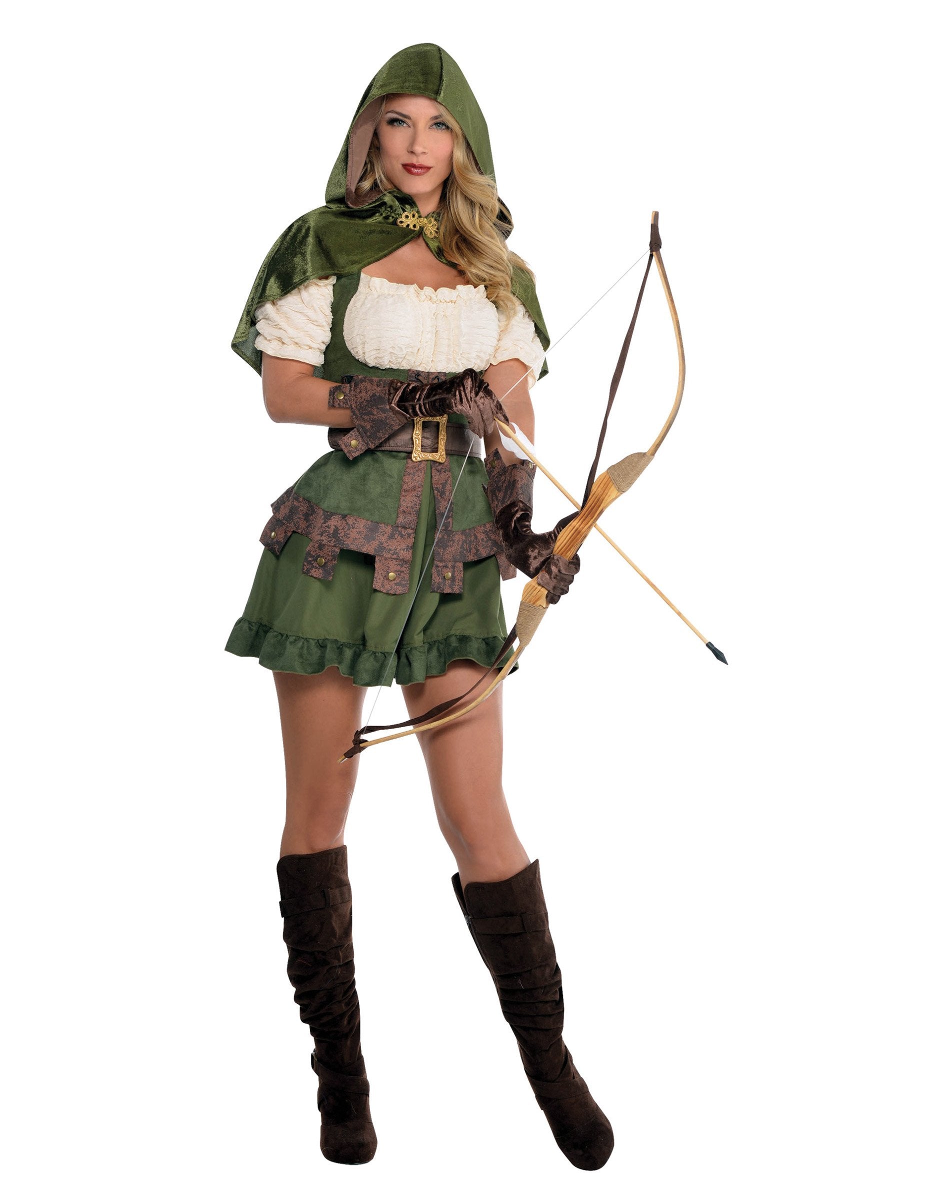Ovaj seksi kostim strijelca za žene sadrži haljinu, ogrtač, pojas i rukavice (luk, pikadovi i čizme nisu uključeni). Kratka dugačka haljina ima stil korzeta koji ga čini seksi. Zelena je s blagim dodirima kestena. Vrhunski puhač haljine je bijeli. Smeđi pojas petlje s lažnim kožnim izgledom omogućit će vam da savršeno naglasite svoju veličinu. Smeđe rukavice imaju baršunasti učinak. Grta od zelenog kapuljača slična Velvetu dovršava ovu prerušavanje. U ovom seksi kostimu strijelca krali ćete neka srca tijekom karnevala ili večeri na srednjovjekovnu temu.