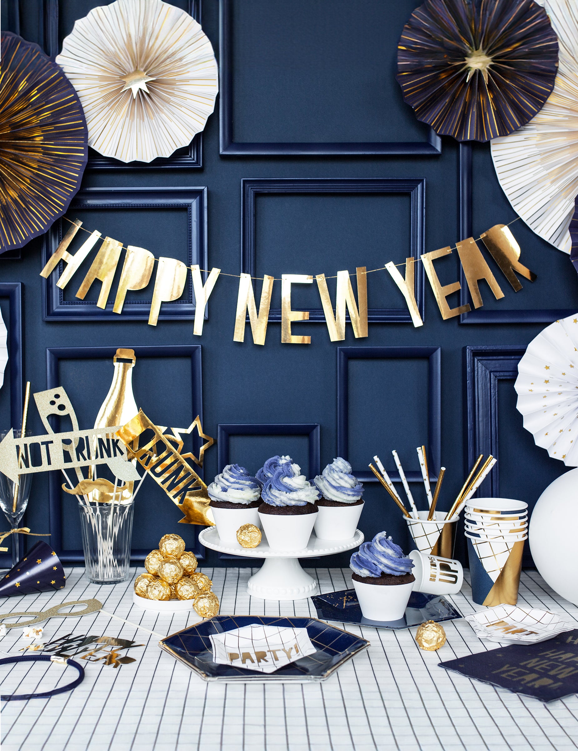 Sublimez votre réveillon avec cette guirlande happy new year aux dimensions de 10 x 90 cm. Cet ornement en carton se compose de lettres majuscules dorées suspendues à une fine ficelle. Cette guirlande est l'élément indispensable pour décorer votre maison lors du nouvel an.