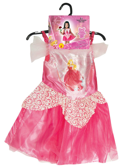 Ova prerušavanje zore je pod službenom Disneyjevom licencom. Sastoji se samo od haljine. Ovo je ružičasto, u satenoj tkanini, s finim elastičnim naramenicama. Princeza Aurore predstavljena je u poprsju, okružena šljokicama. Dno ružičastog tila previdi veo sa svjetlucavim uzorcima. Ova prerušena ljepota za spavanje bit će savršena za karneval vaše princeze. NB: Ovaj se proizvod prodaje u jednoj veličini, za dijete od oko 3 do 6 godina.